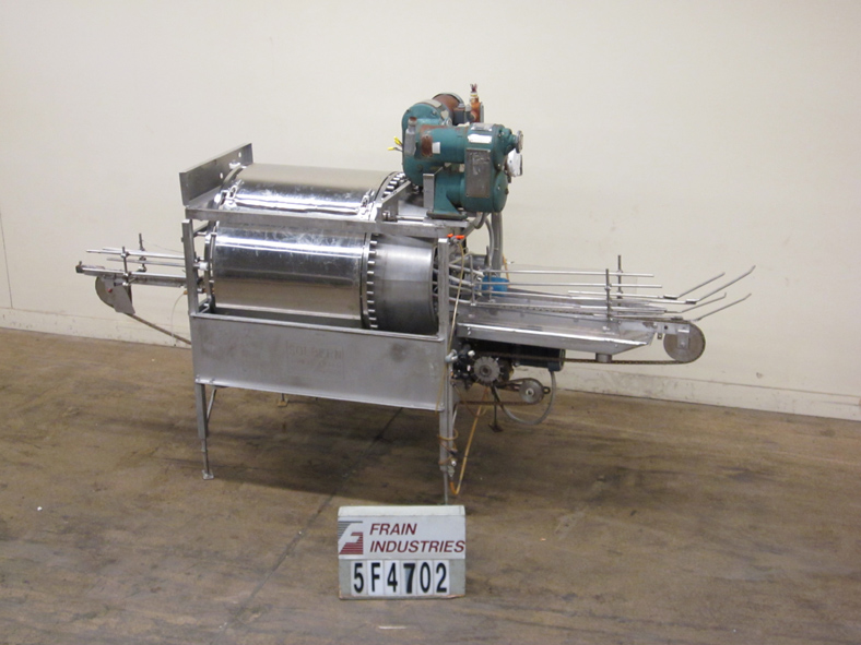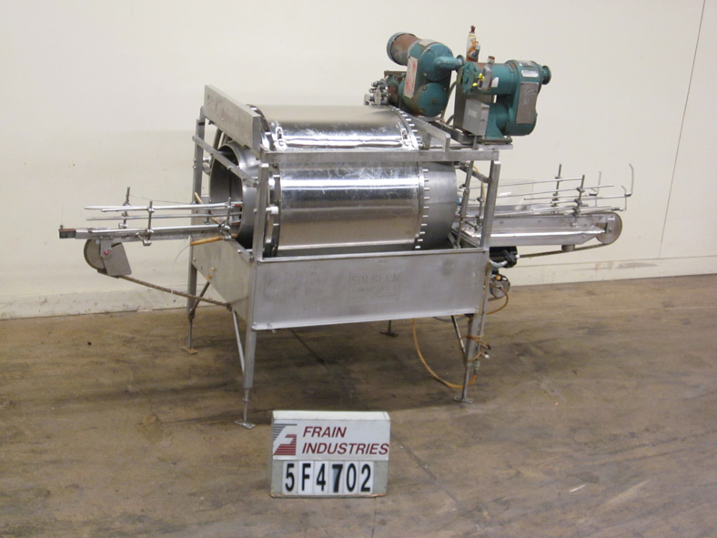 Solbern Model LSB不锈钢,在线接缝钻丛林设计,专为高速重新生产和炒作或添加任何自由流动的液体,如肉汤,到预填充的容器,无溢出,每分钟的容器数量 - 取决于材料和应用。配备58“长x 10”宽x 10“高不锈钢顶部产品罐与60”长进料螺钉穿过填充区域,容器成角度调节头部空间,在离开前精确填充和微小的流量。具有78英寸长x 19“宽x 16”高底不锈钢溢流罐,具有穿孔粒子面板。在离开进料螺杆之前,将螺旋容器间隔开并被缝合器链拾取,提供光滑的转移Spillage。所有不锈钢卫生管道和瓦基锯130 PD泵。安装在高度不锈钢框架上,可调调平腿。