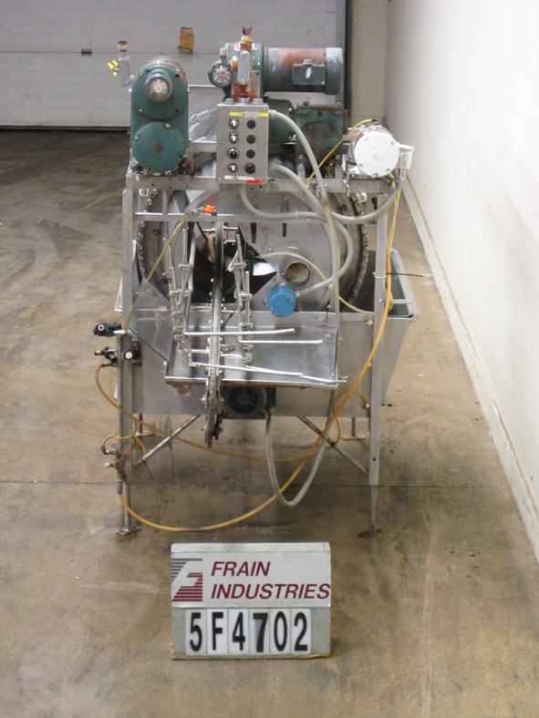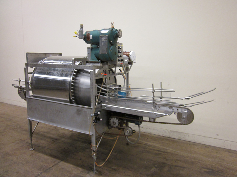 40个口袋旋转,持续运动,容量填料,可速度高达400康复金 - 取决于材料和应用。填充量由产品口袋的直径和高度确定(改变部件)目前设定为(40)1-1 / 4“直径x 4”深层产品口袋,所有不锈钢结构,配备54“L产品蠕虫螺丝容器进给,4个口袋露出的产品负载面积,配有可选的水喷嘴产品辅助填充系统(用于贴上产品)和水平刮水器。PLC,带控制面板,已启动,停止,慢跑,输送机和容量,控制按钮与e- 和彩色状态灯棒。可以处理切片肉,蔬菜,水果,珠光等产品等产品,最后填充4-1 / 2盎司玻璃婴儿食品罐子,速度从200 - 400率下的速度CPM。