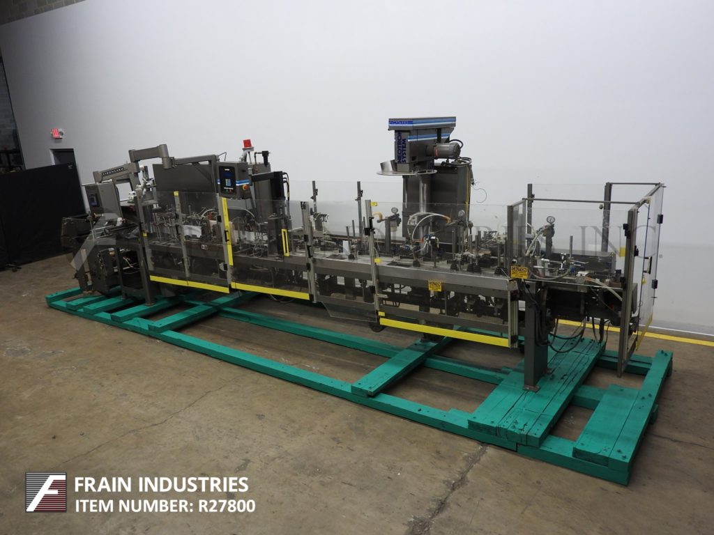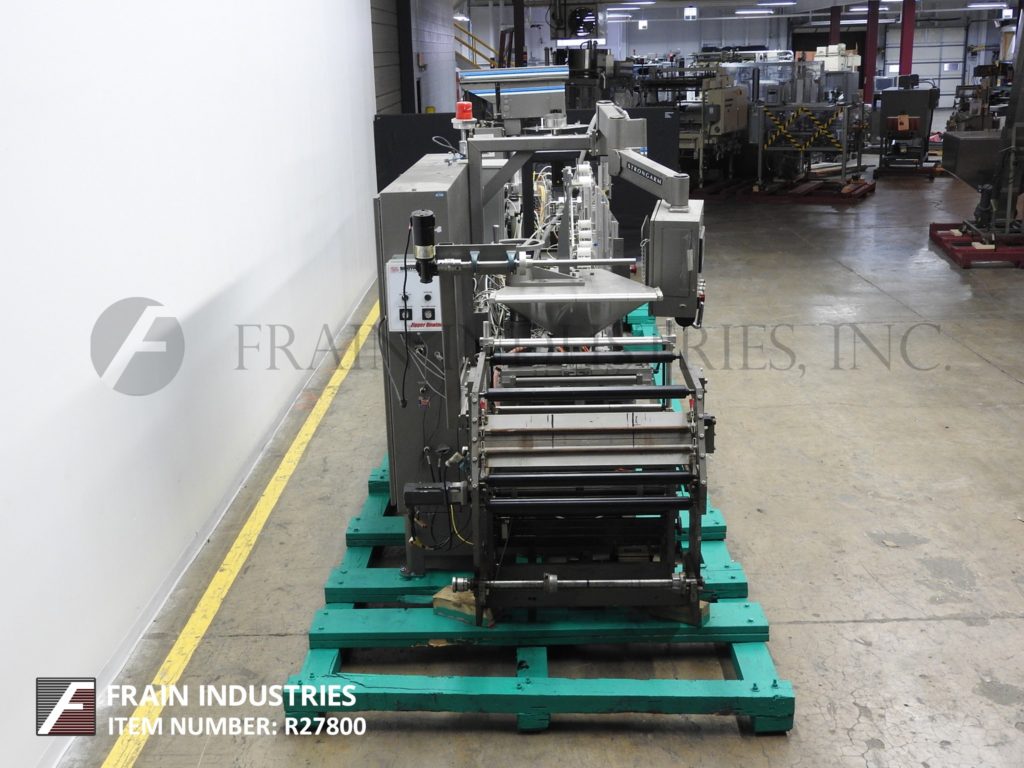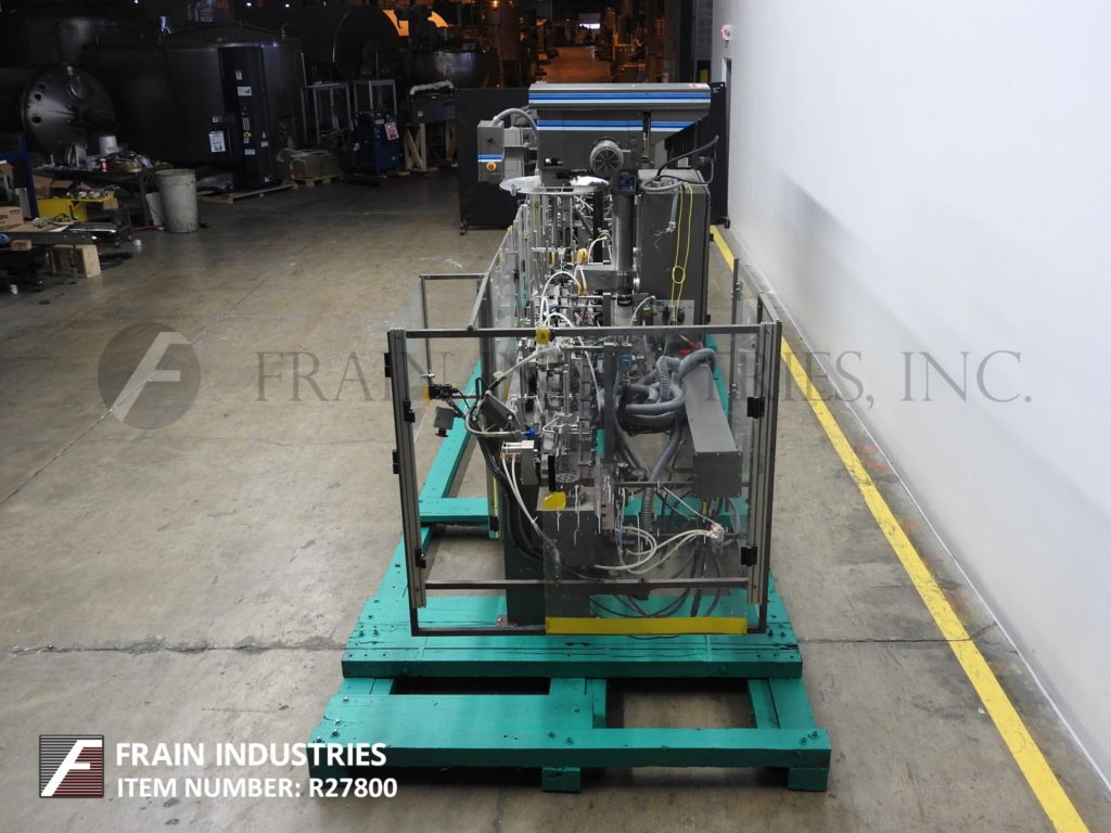 南包装,spm10 -12型,全自动,卧式,间歇式,成型,充填,封口机。根据材料、应用和机器配置,每分钟可循环10至100次。袋尺寸范围:2"至8¾"长度;2英寸到9½英寸的高度。配备拼接与汽车网络追踪站,拉链放松,打孔机和废料收集,上下挤压风琴袋,袋饲料链系统设置10日”中心,形成犁,膜张力辊、登记、侧密封与平行安装酒吧、截止车站,(12)剪辑,吸盘风格袋刀,伺服螺旋填料,顶部热封杆,顶部密封冷却杆和袋取下站。薄膜规格:最大外径20",最大卷筒纸宽度28",外径3"。控制面板带有AB控制器,AB PanelView 550触摸板显示,按钮启动/停止和数字温度控制器。安装在重型基础框架。