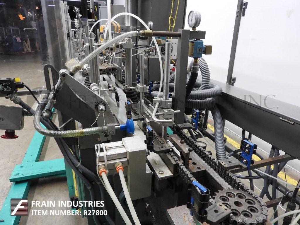 南方包装型号TE700VF,自动,间歇运动,托盘前额定从10到42托盘每分钟-取决于材料和应用。托盘尺寸范围:15"至42"的长度;宽度12"至34";深度2“至6”。配备扁空杂志,带有回收的PIC-n-place,多轮喂养系统,潜水(4)托盘成型头,Nordson(2)枪热熔胶系统控制面板,带开/关,慢跑,跑,胶水,真空,RAM头控制和e-STOP,互锁安全防护和安装在不锈钢基架上。
