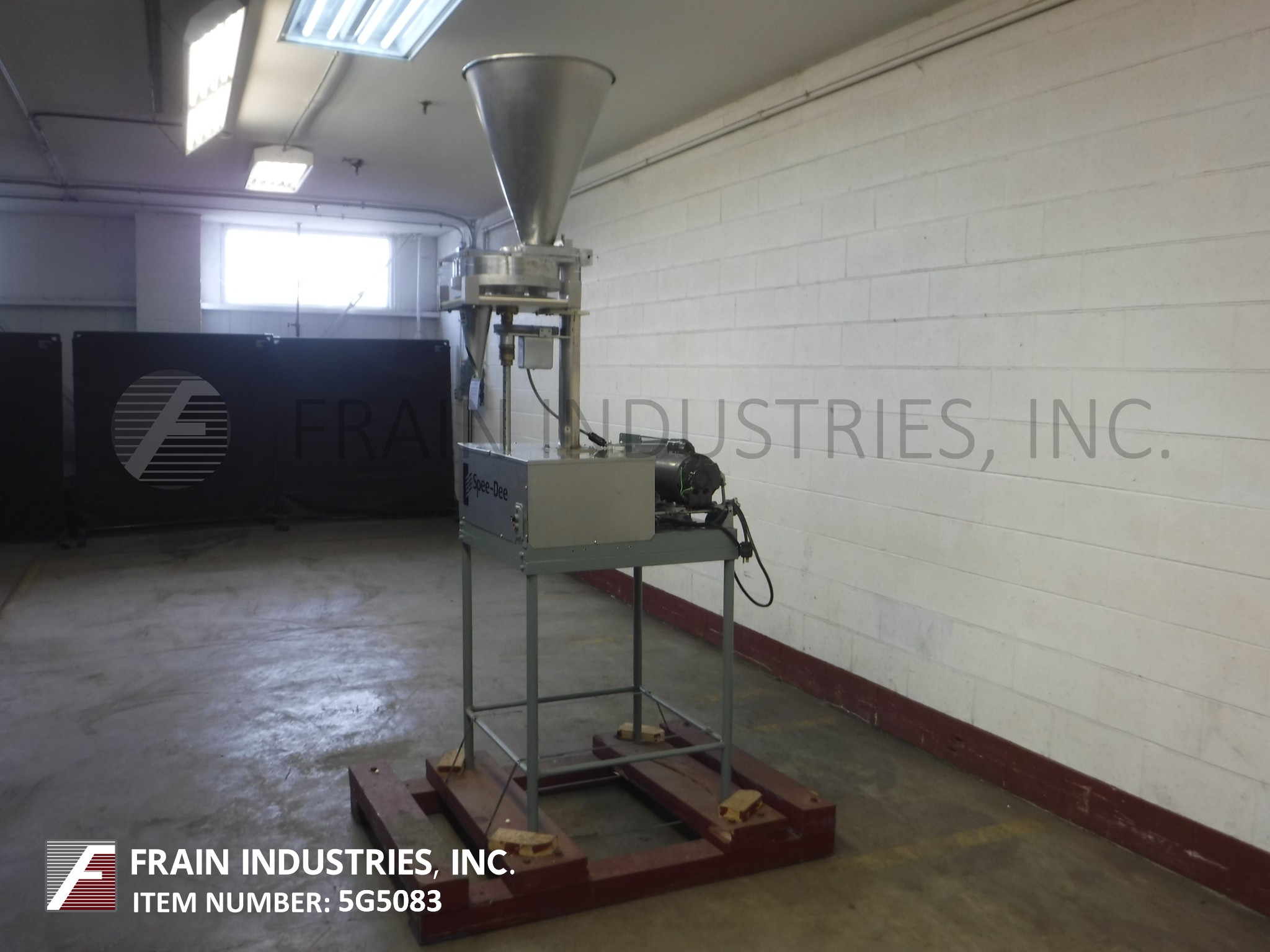 Spee Dee,型号3500S,半自动伺服驱动单头螺旋填料,每小时的产品量-取决于材料,应用和操作熟练度。配备18"直径x 15"深不锈钢无缝产品料斗螺栓下盖,5½" x 6"椭圆形产品在饲料溜槽,变速和脚踏板。控制面板有数字电子控制器与触摸板控制和面板视图与e-stop和安装在“H”支架。