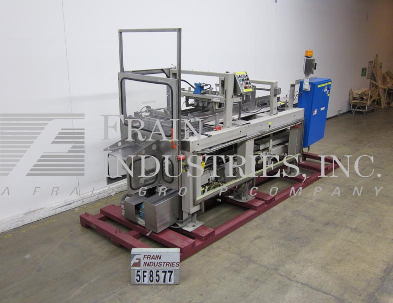标准克纳普型号935,紧凑,下降箱包装额定从10到30箱每分钟产品数量-取决于材料和应用。容器尺寸范围:直径2"至7";3/1-4“到14”的高度。外壳尺寸范围:6"至24"长度;宽度6"至15";1-1/2“到19”的高度,可以处理大多数圆形和矩形风格的容器(与适当的变化部分)。配备120"长x(3) 7-1/2"宽塑料德龙饲料输送机与4个可调节的产品通道,双72"长皮带94"长拖带空箱输送机发送软下降。控制面板有面板视图A/B控制器,启动/停止,自动,jog和e-stop控制,中央润滑系统和气动阀组。安装在重型框架上。