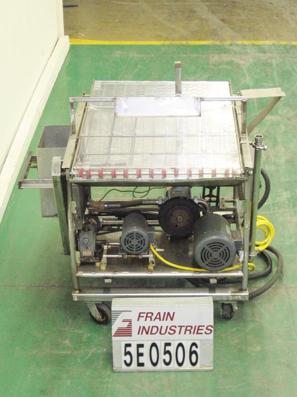 Stein型号遗产,自动不锈钢面包式涂抹器,每小时产品数量,具体取决于材料和应用。能够运行面粉和细颗粒的自由流涂料材料。配备36英寸宽x 36英寸长的饲料输送带中的长产品,配有27英寸宽顶涂抹器和底部面包罩,可覆盖皮带和完全涂层产品,30英寸宽x 35英寸x 35英寸长的不锈钢钢丝产品放电带,带连帽对于去除面包屑,涂料材料通过7½英寸的直径x 65英寸长的长不锈钢螺钉传送带从填充站转移到顶部涂抹器传送带通过直径为6½英寸的x 50英寸长不锈钢螺钉输送机返回填充站。安装在带脚轮的不锈钢底架上。