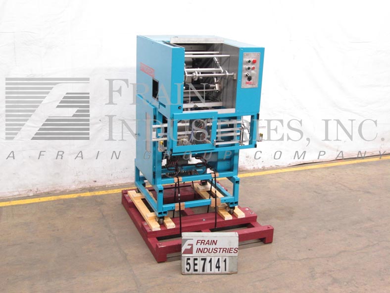 Styrotech, ST1550型,自动,弹性套筒。额定每分钟10到30个容器-取决于材料和应用。能够处理各种各样的容器类型,形状和大小包括大量来自8盎司的罐子和瓶子2½加仑,集装箱尺寸范围为2¼“9½OD x 6½“宽x 13½”高和layflat电影大小从3“15”和标签大小9¼”在宽度与适当的变化部分。薄膜类型和规格:聚乙烯,2.0至3.0毫升,10%拉伸,无容器/无标签传感器。控制面板有A/B控制器和触摸屏人机界面。安装在重型框架联锁安全防护和4½“宽x 120”长的delrin输送机。