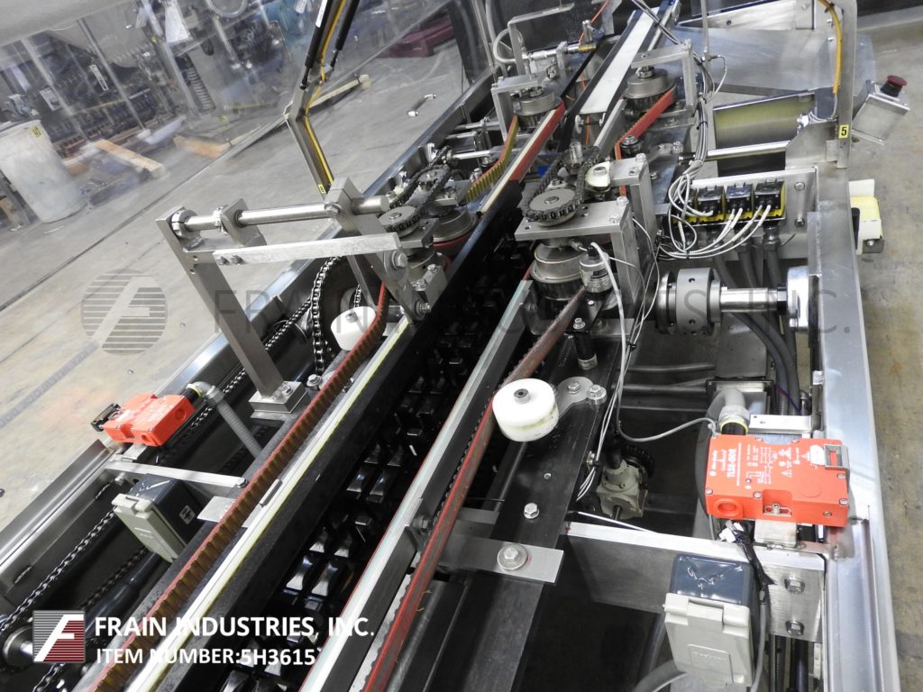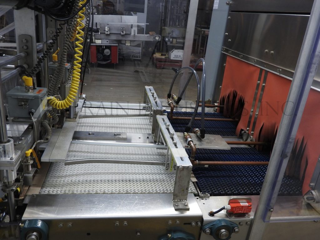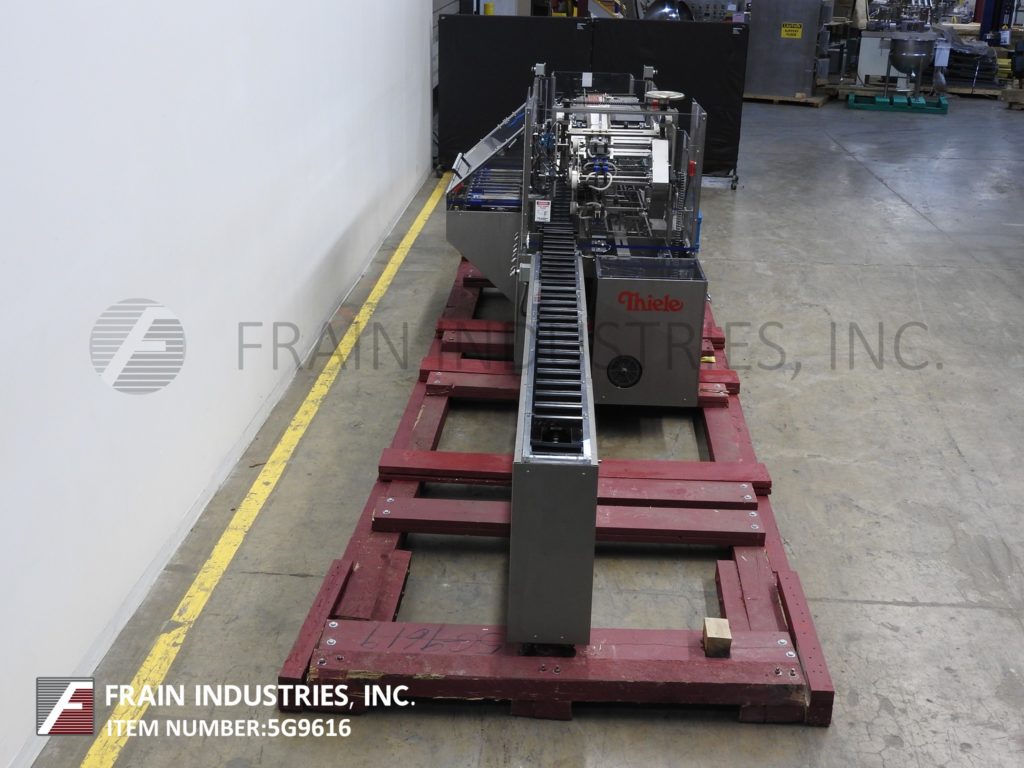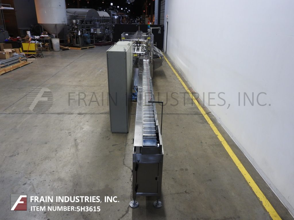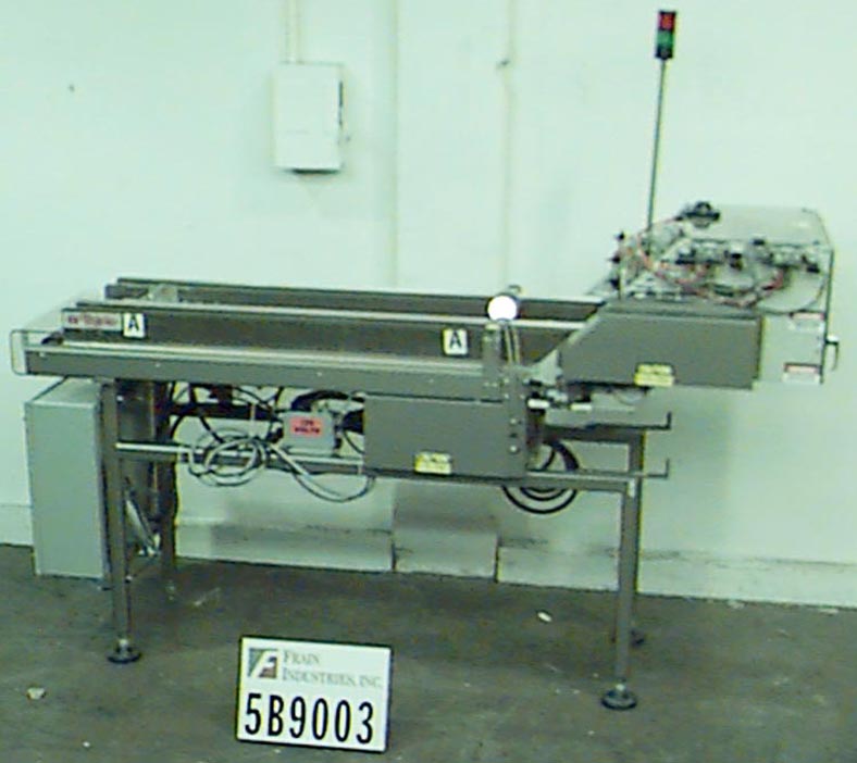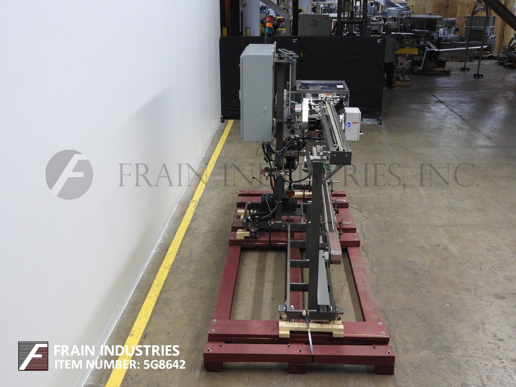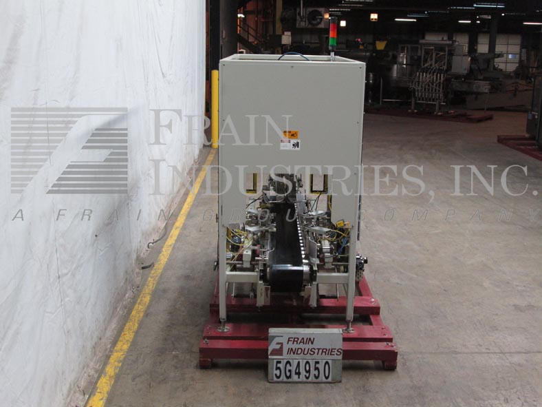 Thiele,双车道收缩捆绑系统,具有挤压件。每分钟5到30封束 - 取决于材料和应用。最大产品高度:8½“;最大薄膜宽度:15”。配备90°进给,(2)推动板进料器,(2)16“宽密封杆,(2)15”宽X 21“长传输输送机,不锈钢收缩隧道(2)16”宽X 15“高孔和48英寸长室,(2)15“宽x 75”长通过带式输送机和36“排出高度。所有不锈钢框架和带有Lexan门和机器的机箱和机器平整螺钉和垫。用AB PLC架和AB完全自动化PanelView和Digital Temp控制器,用于热隧道和密封杆。安装在带平整腿的基架上。