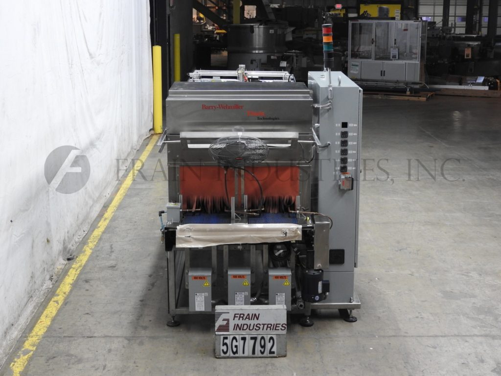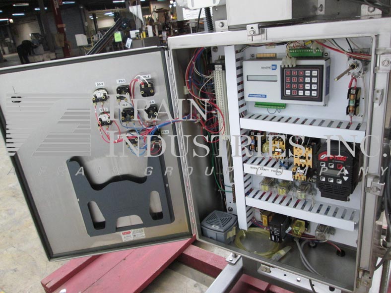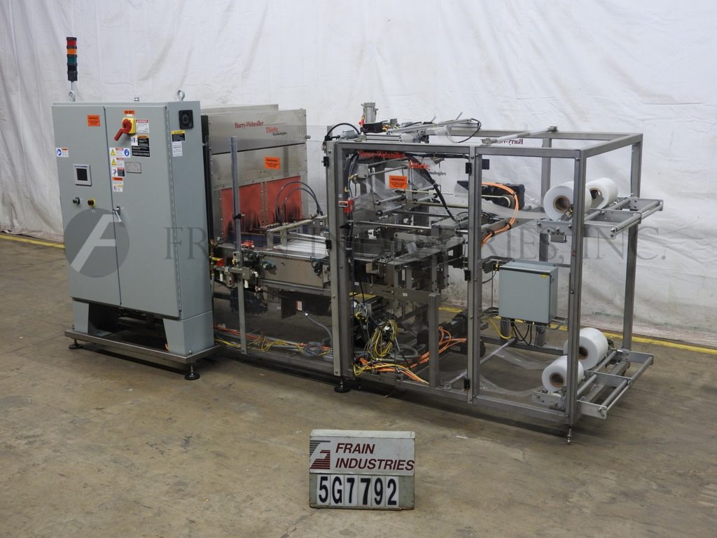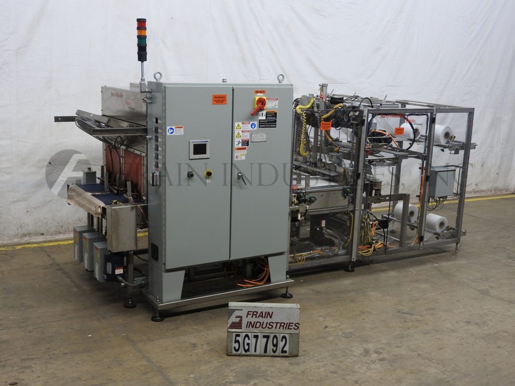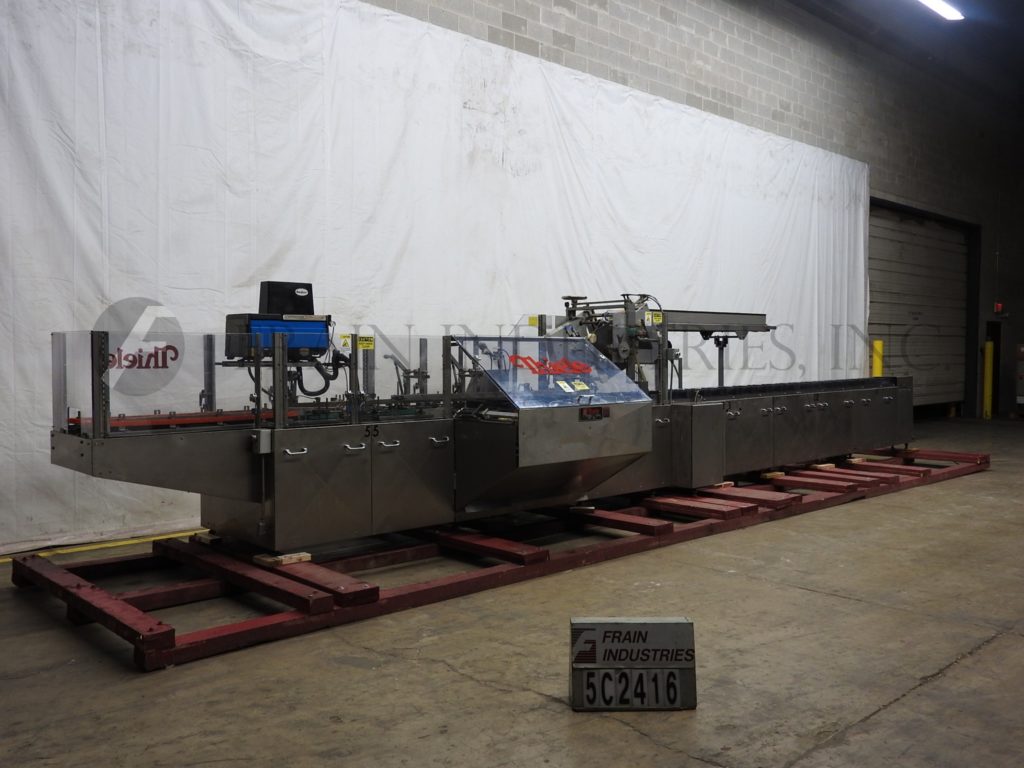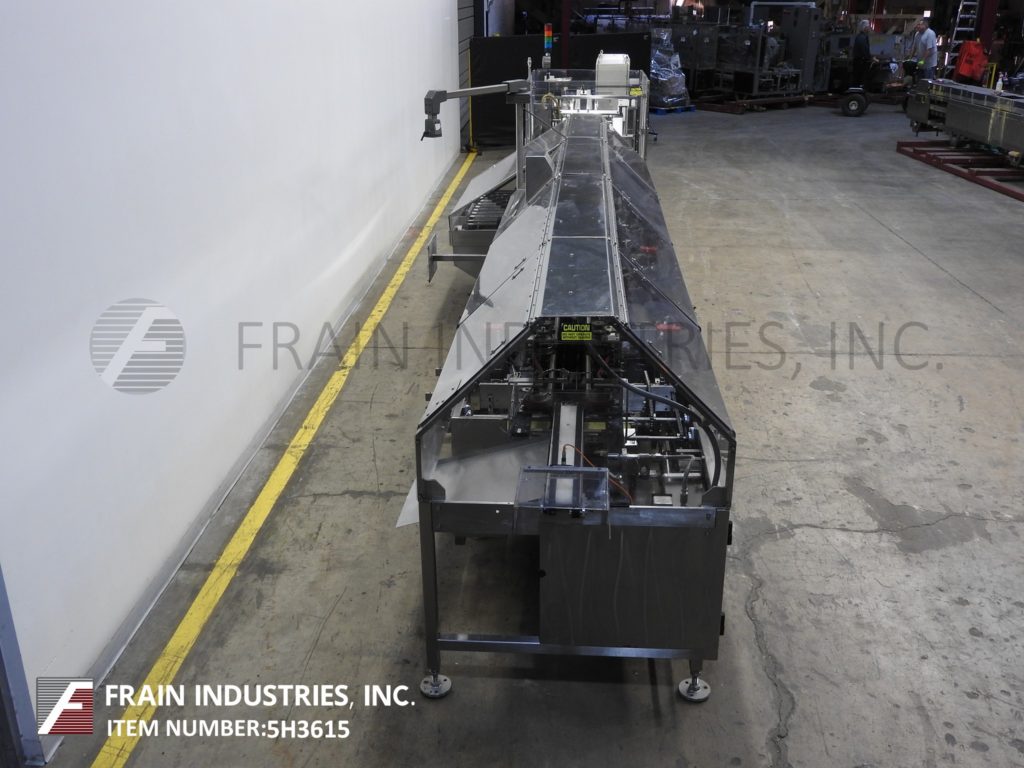 Thiele,双车道收缩捆绑系统,具有挤压件。每分钟5到30封束 - 取决于材料和应用。最大产品高度:8½“;最大薄膜宽度:15”。配备90°进给,(2)推动板进料器,(2)16“宽密封杆,(2)15”宽X 21“长传输输送机,不锈钢收缩隧道(2)16”宽X 15“高孔和48英寸长室,(2)15“宽x 75”长通过带式输送机和36“排出高度。所有不锈钢框架和带有Lexan门和机器的机箱和机器平整螺钉和垫。用AB PLC架和AB完全自动化PanelView和Digital Temp控制器,用于热隧道和密封杆。安装在带平整腿的基架上。