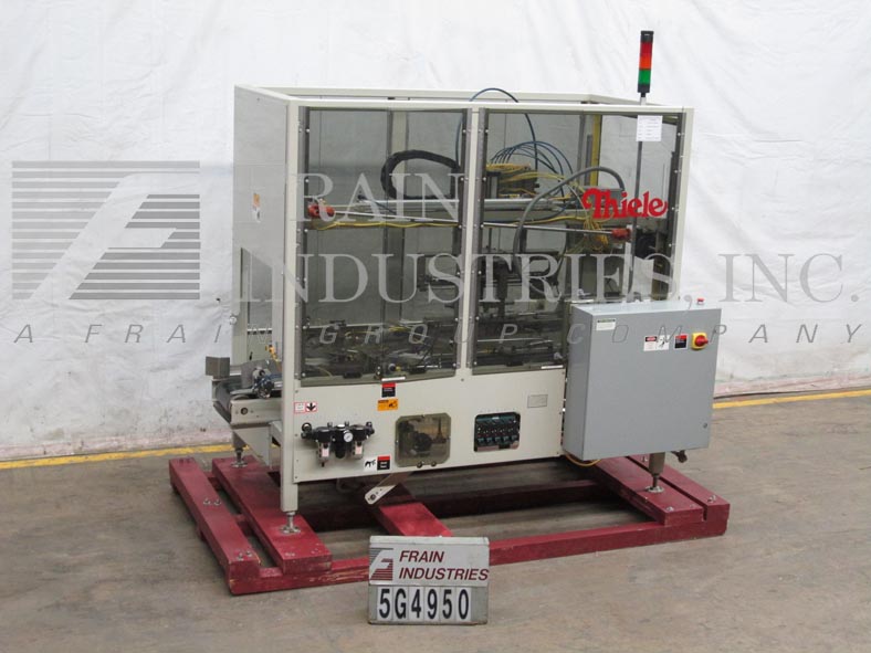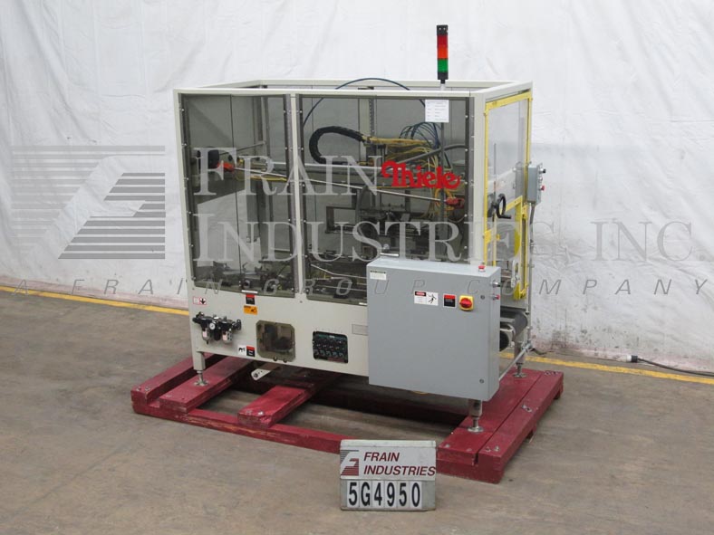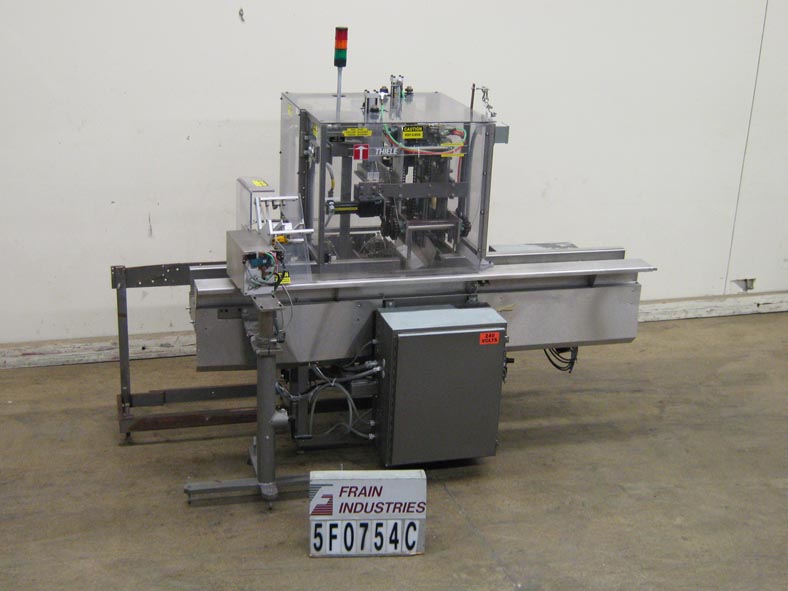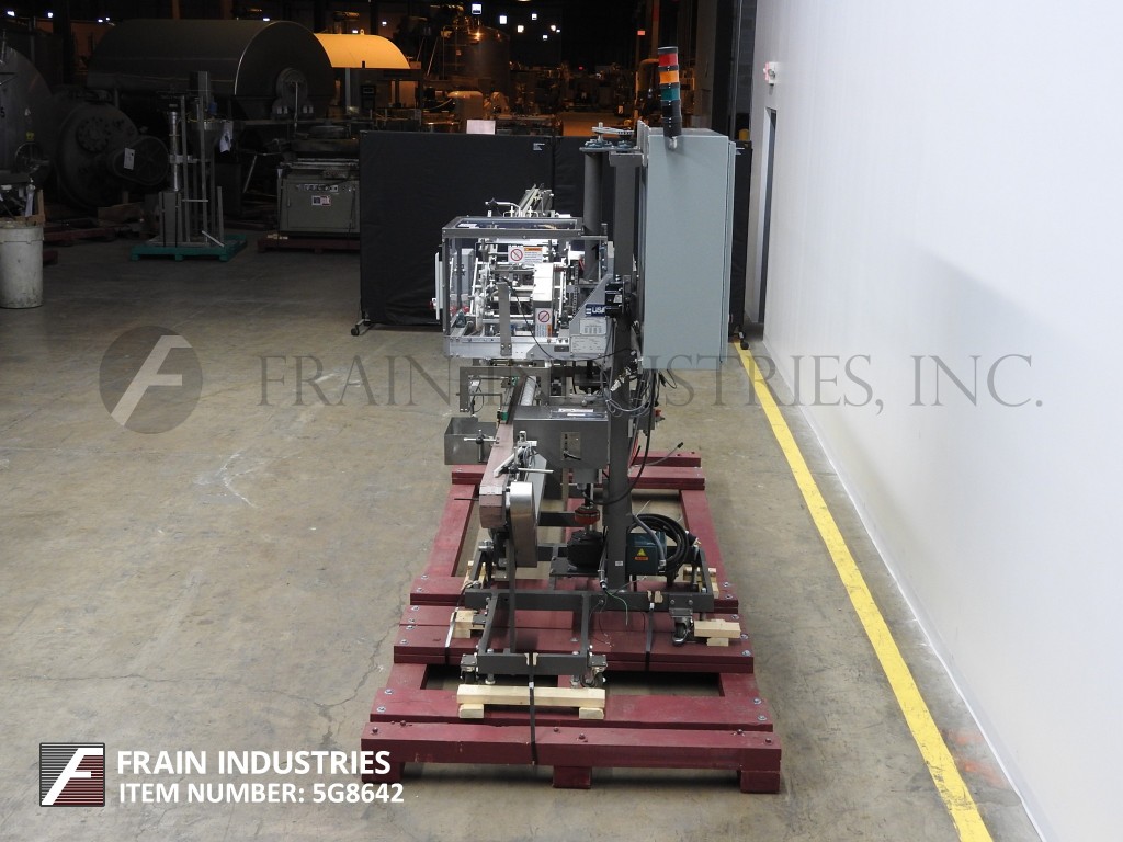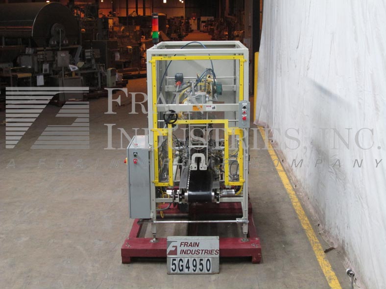 蒂勒50- im型,间歇运动,水平,热熔胶盒机额定每分钟20 - 50盒,速度取决于材料和应用。纸箱尺寸范围:长度2-1/2"至9-3/4";宽度1"至6-1/2";深度7-1/2"至16"。配备3条可调节的链条设置在12"中心,固定斗在进料,动力空白纸箱杂志,(4)头往复挑选在适当的地方,没有纸箱没有产品,夯实站和冲压臂装载机,顶压轨道,热熔胶系统,控制面板有A/B PLC和PLS和A/B频率驱动控制器,真空系统和e-stop。安装在重型基础框架上,联锁安全防护和状态灯杆。