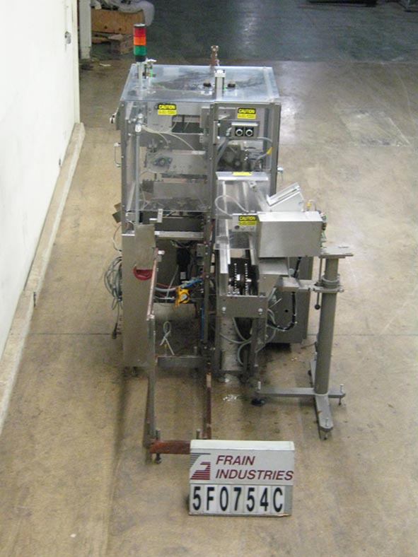 蒂勒,C-50型,自动,连续运动,水平,反向折叠纸箱。根据材料、应用和机器配置的不同,额定每分钟60至300箱。纸箱尺寸范围:3 / 4 "至4½"长度;(3/8)“至3”宽度;深度1½“至7”。配备一个星形轮自动加载程序,100年“长产品在进料输送机1½”长x¼“宽x 7”深桶产品,84年“长空白纸箱杂志,(4)头旋转图片和地点,单链载波系统上设置5”中心,桶凸轮加载部分,条形码扫描器,24“长压缩部分和联锁聚碳酸酯安全保护。控制面板有一个AB控制器,带有按钮启动/停止控制驱动器和真空,变速拨号和运行/慢跑开关。