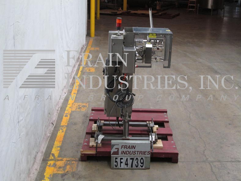 蒂勒,60S-SP型,自动,连续运动,不锈钢,卧式,热熔胶盒。额定每分钟60 - 400箱-取决于材料和应用。纸箱尺寸范围1"至3-1/2"长度;1/2"至3-1/2宽度;4“4 1/2”深度配备(2)链和246年“长在进料输送机3 - 1/2”长x 2“宽x 7-3/8”深桶固定产品,汽车空白纸箱杂志,(4)头旋转图片和地点,(2)链载波系统上设置5”中心,与1 - 1/2“高x 1/2“宽”凸耳,没有纸箱/产品/产品/没有纸箱,筒形凸轮自动加载部分,诺德森热熔胶系统,主要和小型襟翼关闭器,48英寸长的压缩部分,联锁Lexan安全防护和statis轻棒。控制面板有CPU控制器与启动,停止,e-stop控制。安装在重型基础框架。