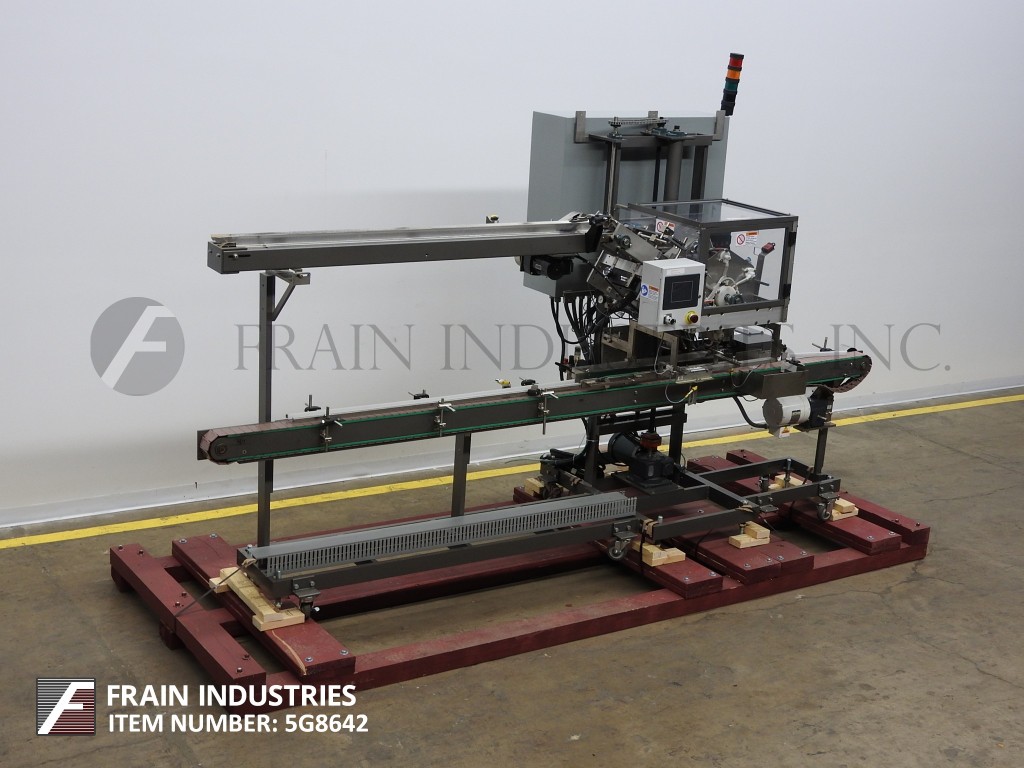 蒂勒1579C型,自动,开箱,胶带封口机额定每分钟1至12箱-取决于材料和应用。箱体尺寸范围:长度7"至22";9-1/2"至15-1/2"宽度;高达16英寸的高度。配备正面顶袋控制和情况监测与光眼,机械4角情况接触和uncuff手指,96"长x 10"宽的情况皮带输送机手曲柄高度和宽度可调,形成头下来收集,扣板和夹子袋,然后停止在胶带站,成型头释放袋和返回uncuffing节,袋然后聚集在2套积累手指的情况下释放,并通过2“胶带应用器。带有A/B控制器的控制面板,e-stop,安全防护和统计灯条。安装在4腿基础框架。