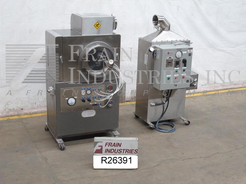 48“直径甲基,不锈钢,单壁柜风格,平板电脑涂布机每批高达400磅 - 取决于材料和应用。配备48”穿孔涂层和干燥盘,19“ID接入口,混合挡板,喷涂和CIP系统用泵,大型前部和两个侧摆动开放门,便于装载,卸载和清洗。雾化空气灯和压力表,温度控制器,气缸和供应空气口,排气通风夹,带橱柜天窗灯和喷雾开/关按钮,启动,停止和电子停止控制