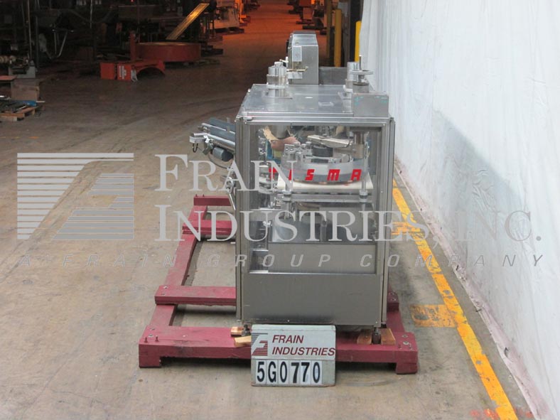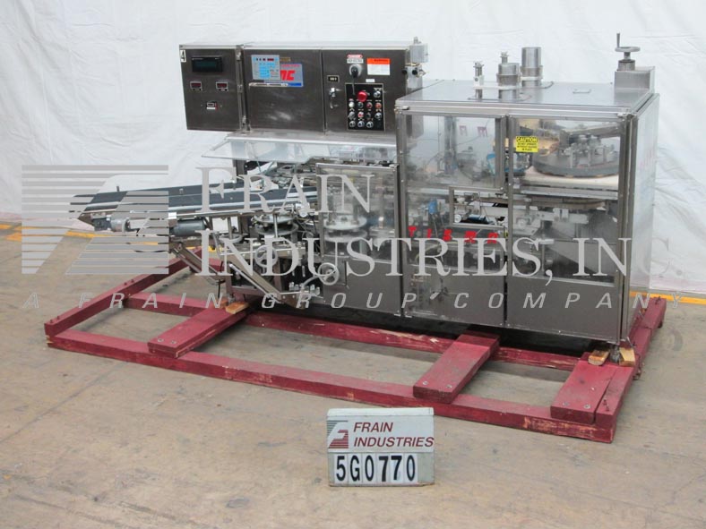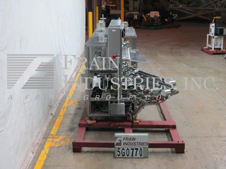 Tisma TC116型,自动,垂直,体积刻度,热熔胶,纸箱,额定从100到700,纸箱每分钟-取决于材料和应用。纸箱尺寸范围:3/4"到3"长x 3/8"到1-1/2"宽x 1-1/2"到3"高。配备双36“长箱杂志,双4头旋转真空挑选和地方,固定斗式输送机上设置2”中心,两个18”产品提要降落伞到16头回转体积填料,过剩的产品收集系统,诺信热熔胶系统,最高压缩纸箱关闭部分,鼓风纸箱放电12“槽。此外,还配备Sysmac PLC系统,枫木系统显示单元,奥玛龙旋转定位器,联锁Lexan安全保护。安装在软钢框架,高度可调腿。最后运行纸箱1-5/16”长x 9/16”宽x 1- 5/8”深