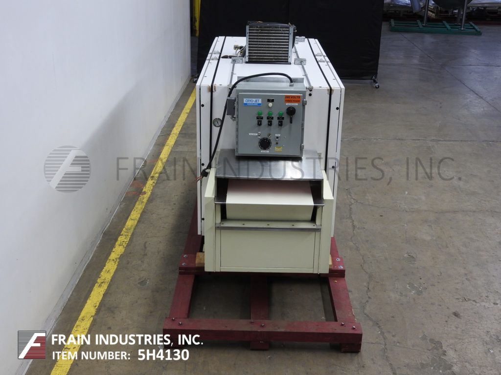 低温喷射,空气冷却,冷却通道。温度和每小时产品数量–取决于材料、应用和机器配置。配备30½”宽x 3¼”高孔径,(1)100”长的冷却室和24”宽x 142”长的氯丁橡胶输送带。带有数字温度控制器的控制面板、用于冷凝装置、盘管风机、低温喷射风机和皮带的变速旋钮和开/关开关。用锁定脚轮安装在(4)支腿底架上。