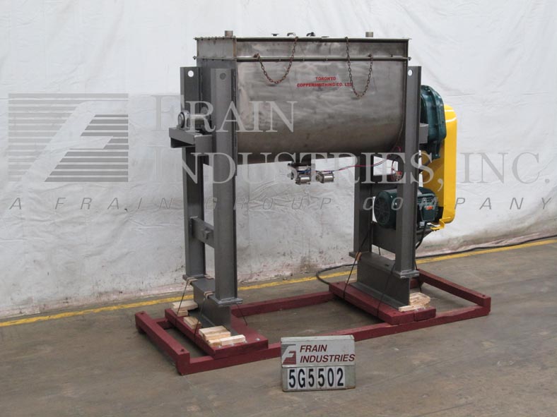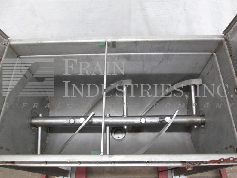 多伦多铜业公司,型号CDR 24,37 ft³(可加工27 ft³),带304不锈钢接触件的单带搅拌机。内部混合室尺寸:60英寸长;30英寸宽;39英寸深。配备翻盖、直径为2½”的电机轴、直径为3½”的混合轴以及2”宽x½”厚的不锈钢带。直径为6“的中心底部排放口配有带48”地板间隙和30 Hp电机的阀门。安装在低碳钢(4)支腿基架上。