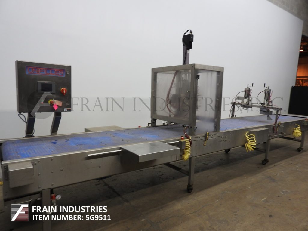 Unifiller Ergomatix Ergo Station FSG,半自动,不锈钢,气动单头活塞填料额定从1000至6000沉积每小时-取决于材料和应用。填充尺寸范围:0.3oz到32oz。适当更换零件。配备37"长x 26"宽x 20"深不锈钢产品料斗可拆卸塑料盖,1-1/2" ID x 10"长活塞,(0.8盎司到8.2盎司)积极关闭无滴漏喷嘴,灌装头延伸和支架,安装在不锈钢框架与锁定轮。