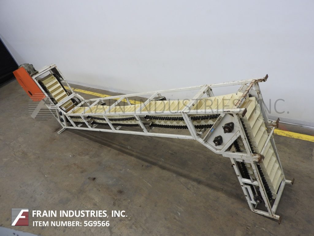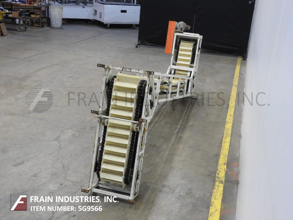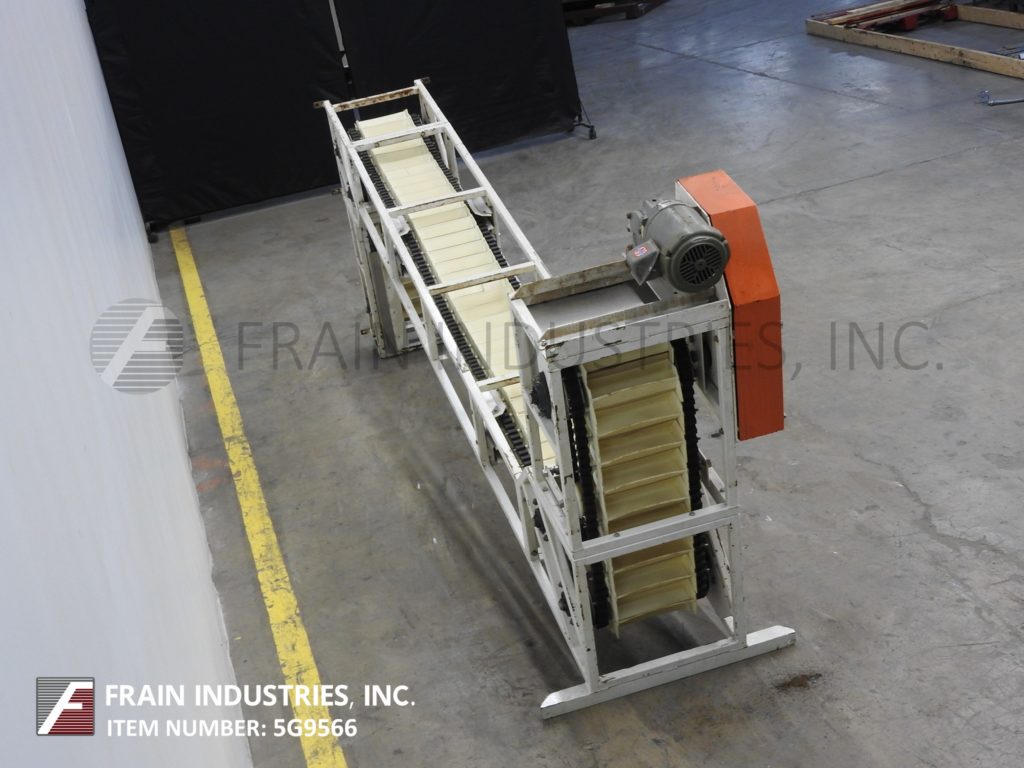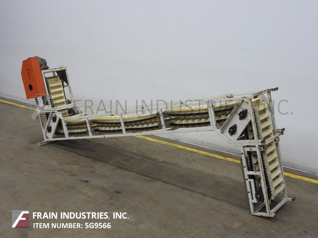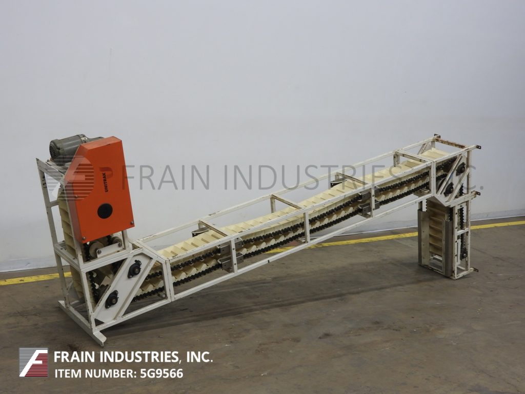 Unitrak TT-500型Z型斗式提升机产品磅数-根据材料,应用和机器配置而定。配备白色塑料产品桶内尺寸9½”长x 2¼“宽x 3“深,有40”长水平地板上运行一个12“152年饲料高度”垂直起降20½“广泛的框架,25”开销水平上运行,149”卸料高度。动力由1 / 2马力顶部安装电机驱动器。