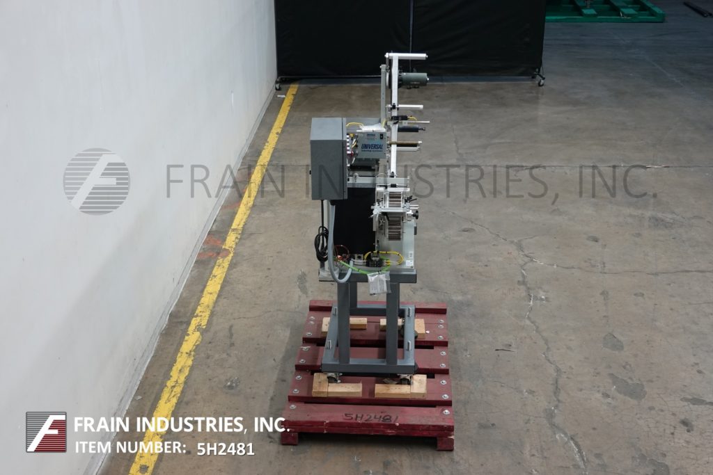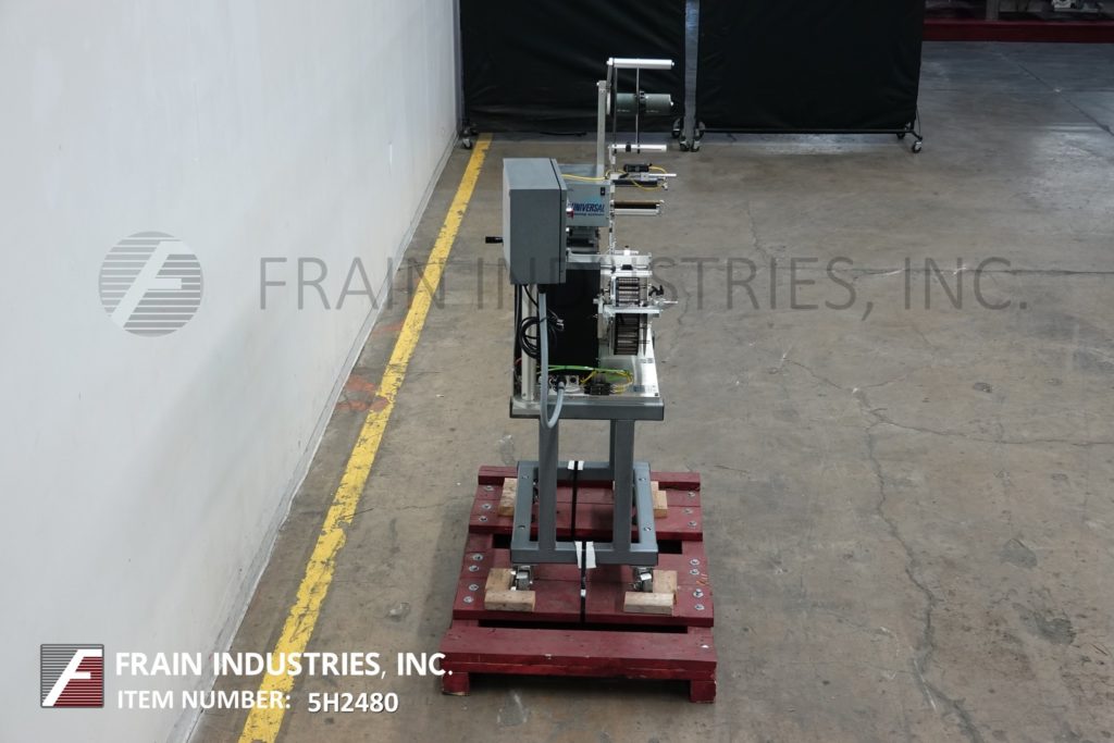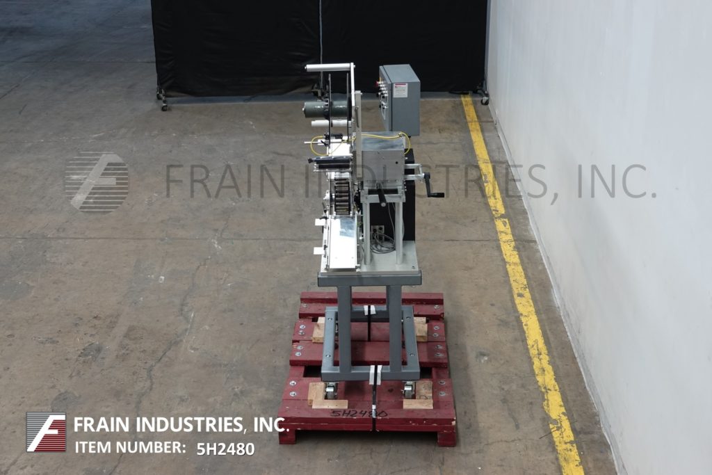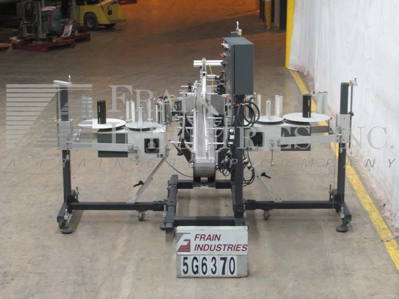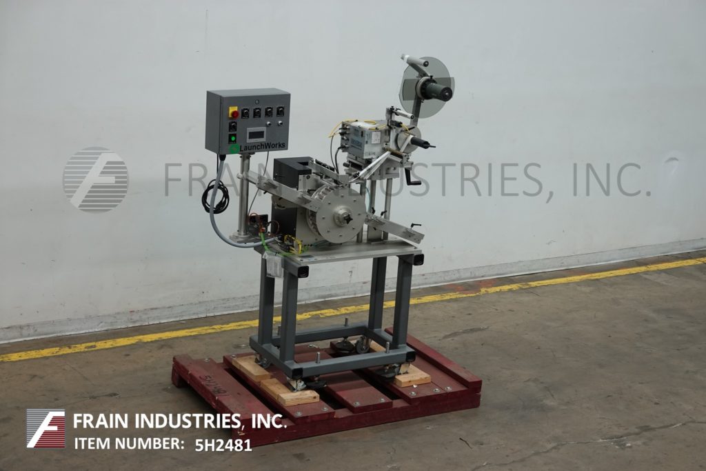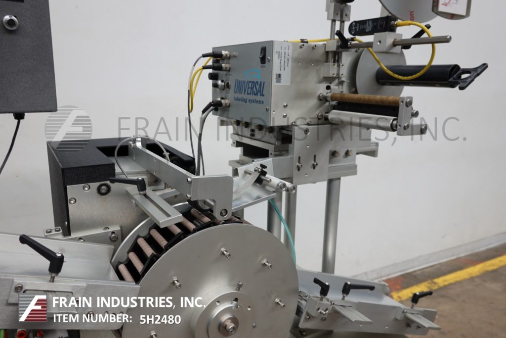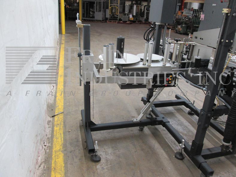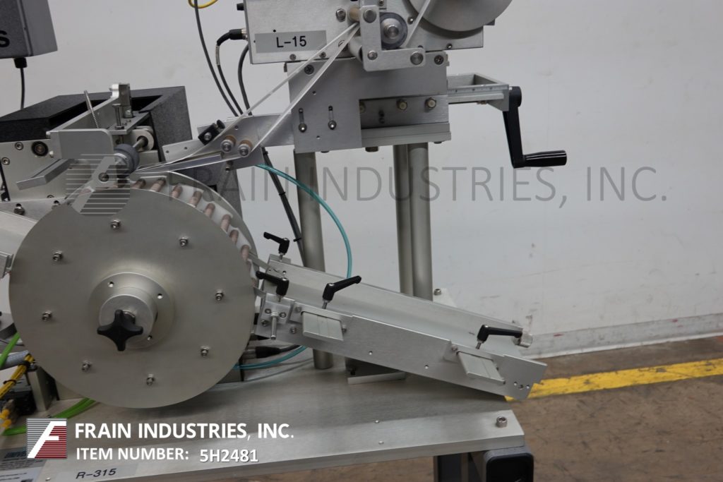 通用型号R315,高速,carrousal风格压敏包装标签额定从0到1200“标签每分钟,与容器的数量-取决于材料,应用和标签大小。标签大小范围:按应用程序。配备16“长× 4”宽的饲料和排放容器溜槽,和12“外径carrousal产品给料机与每个应用的口袋数量。L-15型标签头,无标签眼传感器。标签卷幅宽6.5",外径12"标签卷在3"外径上,6"外径倒卷在1-1/2"外径上。控制面板有控制器与读出和carrousel,馈线,包装单位,应用器,和主机上/关闭开关,包装和应用器速度控制刻度盘和启动/ e-stop按钮。安装在基础框架与脚轮和水平腿。