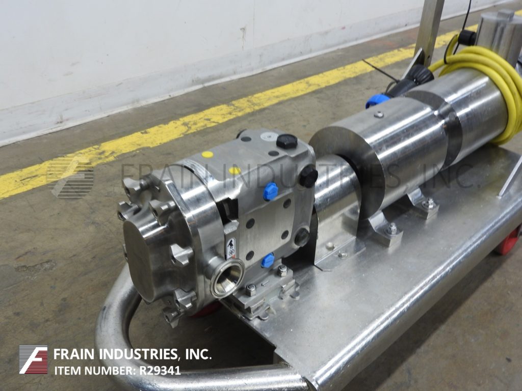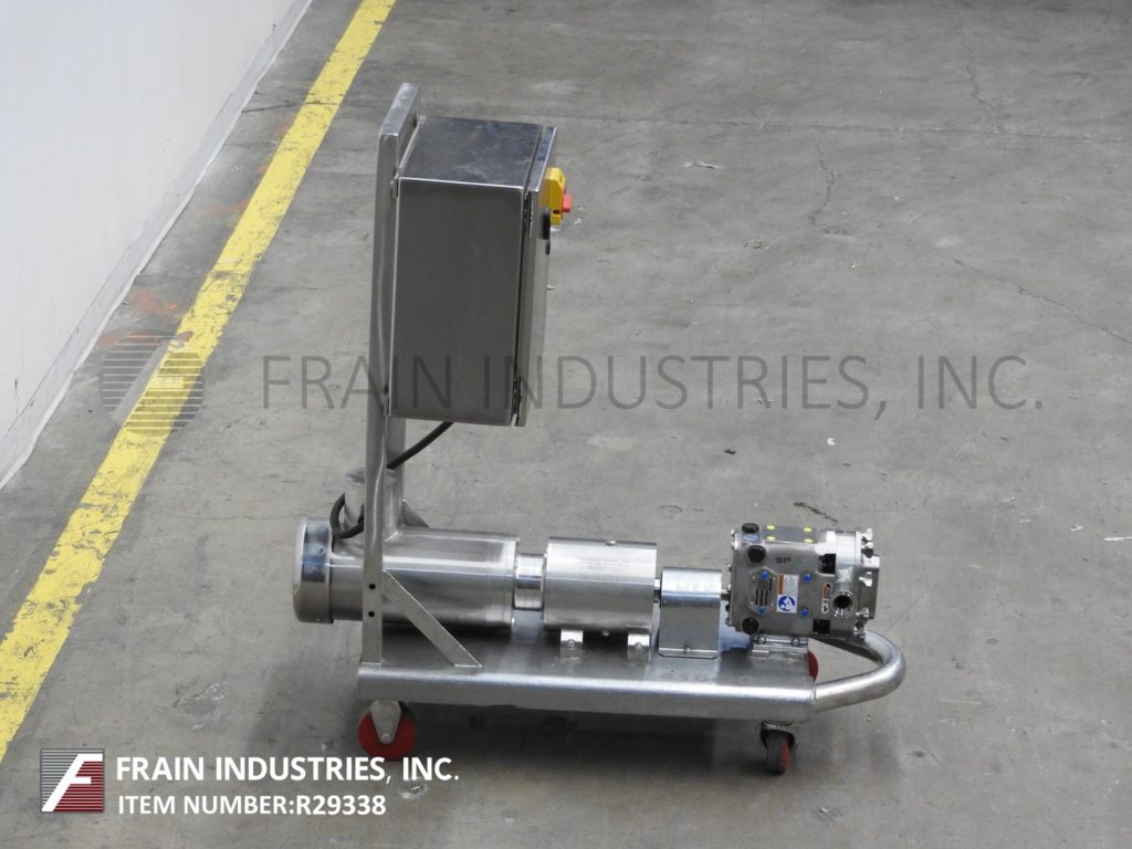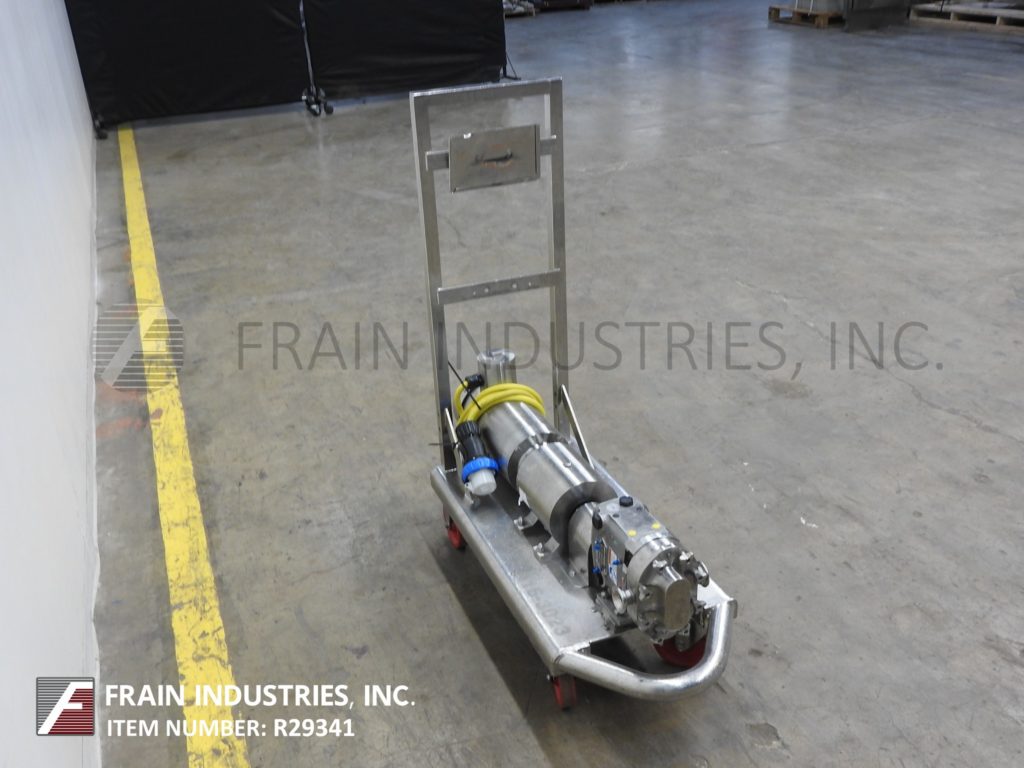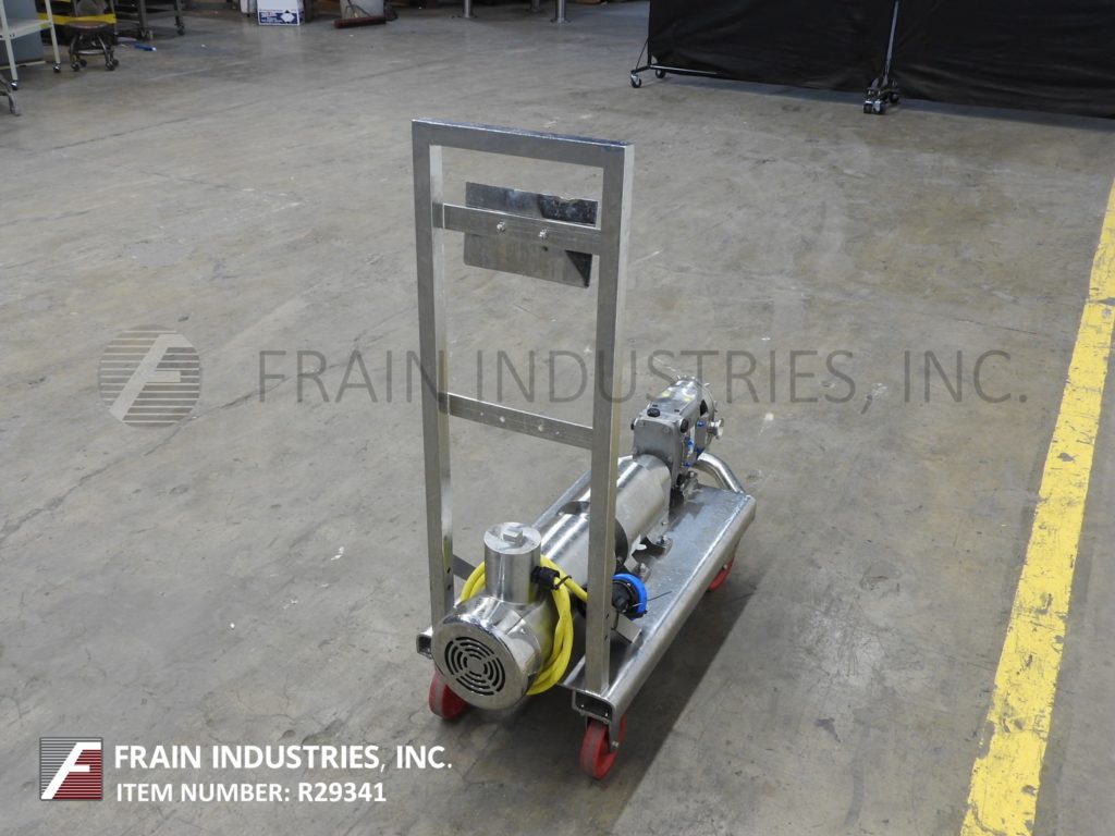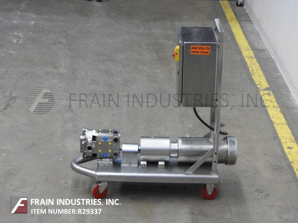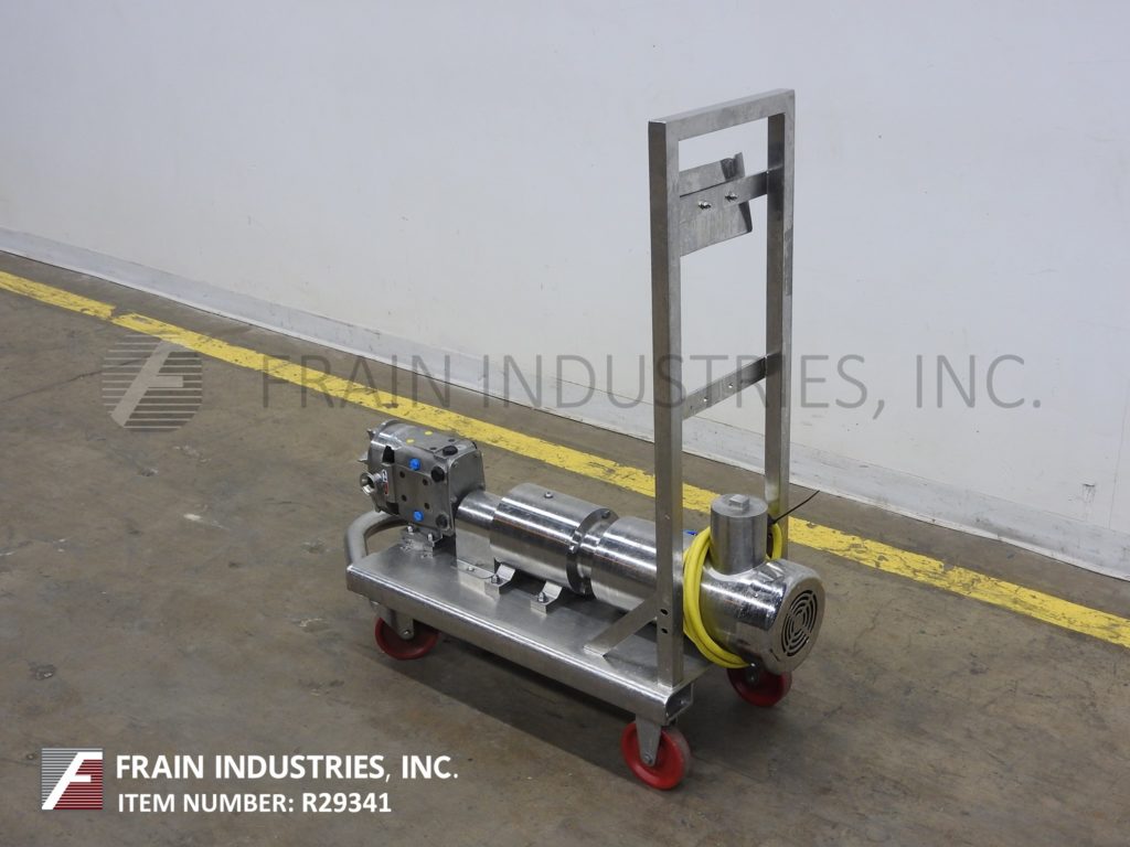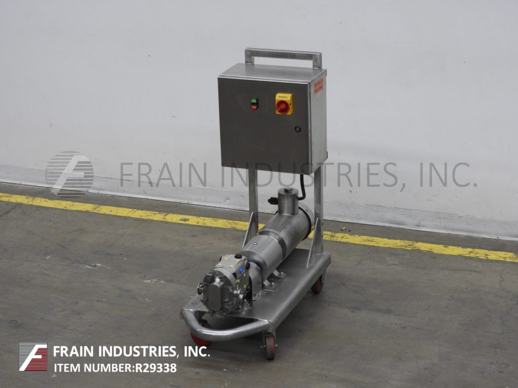 沃基肖,模型15,与316个不锈钢接触部分正排量泵。从每分钟的产品的1至10加仑额定 - 取决于材料,应用和设备配置。200psi的最大工作压力,在-40华氏度至200华氏度标准和最高300华氏度用热clearence转子/定子和氟橡胶密封件和能够操作顺时针两者,或者逆时针温度范围。配备有2" OD / 1.5“ ID卡箍式产物的充电/放电11" 离地间隙技术一个2 HP驱动具有可变速度控制器和3:1的齿轮比为7.5加仑的最大电流速率/分钟。安装在45" 长×18" 宽的不锈钢推车。