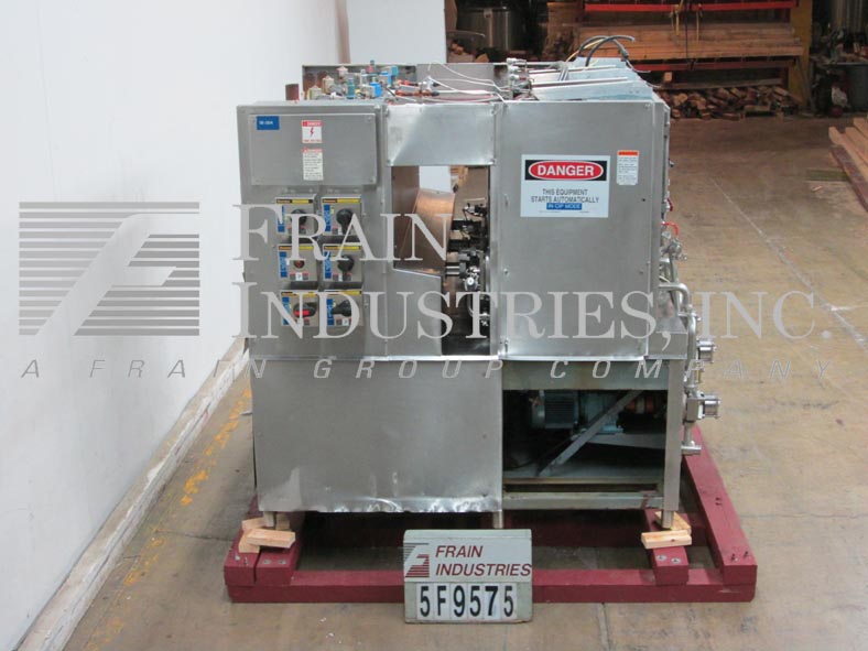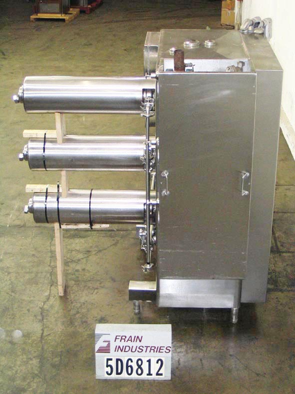 WCB / Anderson,连续,氨冷却,三管镍镀铬冻结管额定值为20至75加仑的每小时混合物,40至150加仑的冰淇淋,每管100%超常数。配备独立操作的管,(3)电机负载计,以确定带刮刀叶片的产品刚度和不锈钢划线。(3)10 HP Dasher电机,(3)3 HP混合泵电机,1“饲料快速夹卫生和1 3/8”进料连接,三个氨流量控制带氨压力表,以及清洁 -放置开关选择。在2磅的背压下需要6个1/2吨制冷(19.5个用于所有三个管)。安装在不锈钢框架上。