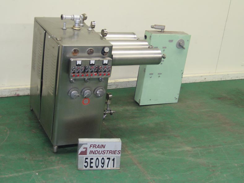WCB / Anderson,连续氨冷却(3)管镍铬镀铬冻结管,每桶每桶10至80加仑,取决于施用。具有独立操作的管,三个电动机负荷计,以确定具有刮刀叶片的产品刚度和不锈钢划线。配备三种5 HP电机,三个3/4 HP混合泵电机,1个“卫生进入和1 1/2”出进料连接。安装在不锈钢框架上。