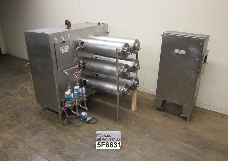 WCB / Anderson,连续,单管,冰淇淋冰箱额定从150- 600gph 100%超过运行冰淇淋。12"外径单管产品,全溢流氨制冷,额定温度为300psi,温度为650℉,额定温度为-50℃,温度为120psi。有一个30马力的冲击电机,3马力液压泵,和2马力产品泵,1-1/2"外径进口/出口端口,1"外径安全泄压,快速关闭阀,带温度的触摸板控制器,和压力表。安装在不锈钢框架上。