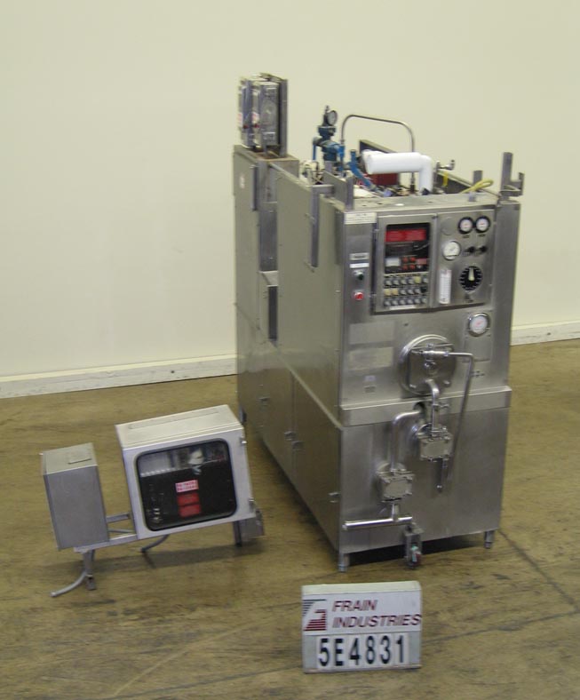 WCB/Anderson,连续式,单缸,冰淇淋冷冻机,额定值为100-400加仑/小时,100%过量冰淇淋,200加仑/小时输入混合物。-取决于材料和应用。在650°F时额定值为150 Psi,在150 Psi时额定值为-20°F。配备全液氨制冷,20 Hp缓冲电机,3 Hp液压盘充油泵、溢流控制、Viscotrol设定点、Camflex压力调节器、升混合LED显示屏和手动kwik清洁/kwik加注。安装在不锈钢框架上。