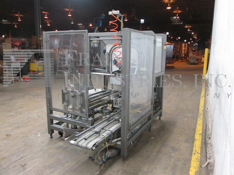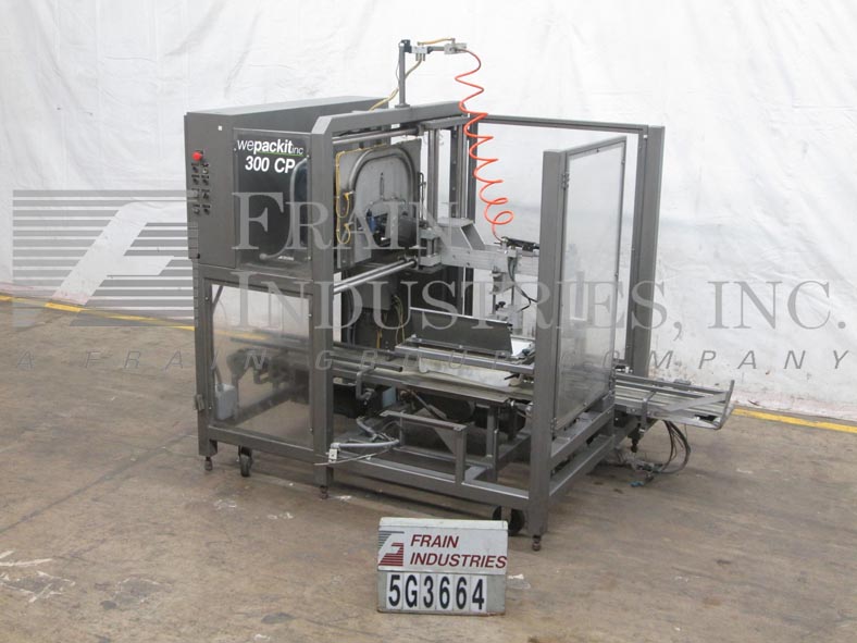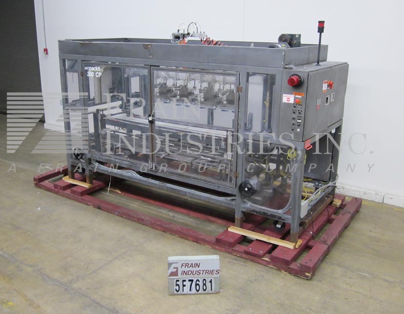 Wepackit型号320E,自动。根据材料、应用和机器配置的不同,额定底部锥度为每分钟5到25个锥度。Case size range: 6" to 22" in Length;宽度为5"至14";深度4.5“至16”。配备34"长x 34"宽的空白盒杂志,气动吸盘选择与侧箱安装,主要和小型的情况下皮瓣关闭器,96"长拖曳顶部和底部的情况转移输送机,手曲柄高度和宽度可调和2"宽磁带头。控制面板有触摸板控制器,带有读出,启动,e-stop按钮控制,状态灯条和联锁安全保护。安装在施法者。