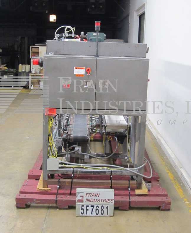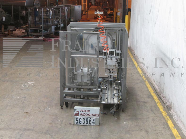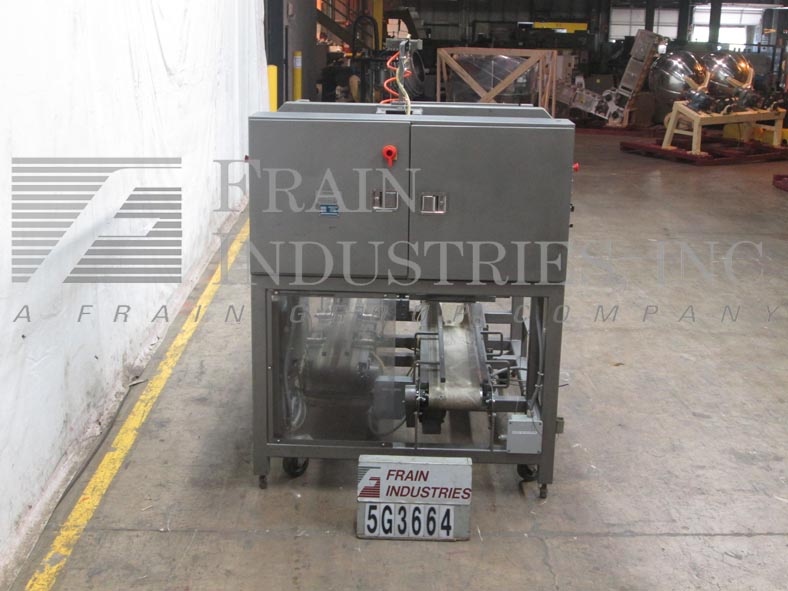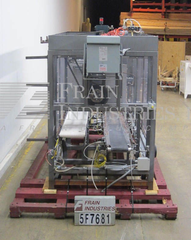 Wepackit, 720XL型,自动装箱,底部锥形。每分钟1 - 14个病例-取决于材料和应用。Case size range: 6" to 17" in Length, 6 to 13" in Width;3"至13"的深度(最大对角线的情况是28"和最大拆卸尺寸是34" x 27")。配备顶部安装空白盒杂志单头(2)真空吸盘pic n的地方,竖起空白盒和翻转到小皮瓣侧,46“长× 3”宽侧面的情况辅助腰带,主要皮瓣关闭器,2“底部胶带头和翻转安全防护。控制面板有A/B PLC控制器和启动/停止按钮控制。安装在基础框架与脚轮。