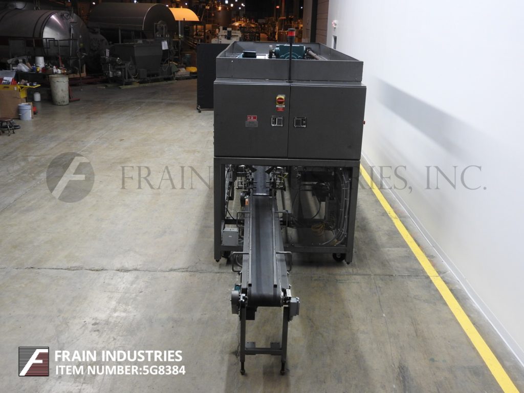 Wepackit 350CP型,自动,顶部装载,挑选和放置,装箱器能够以每分钟10次的速度装载(4)个箱子,集装箱和箱子的数量-取决于材料,应用和头的数量。配备130"长x 14"宽cleated柔性链产品输送机设置在16"中心和130"长x 10"宽橡胶带箱输送机,(4)头(4)吸盘产品挑选和放置头部与需求系统,将重复循环,直到箱子完全包装。控制面板有A/B PLC,具有启动,停止,e-stop,拾取,包装,jog,产品和箱子输送机控制和联锁安全防护。安装在重型基础框架。能够处理桶,瓶,罐,纸箱,麻袋和热成型托盘与适当的更换部件。