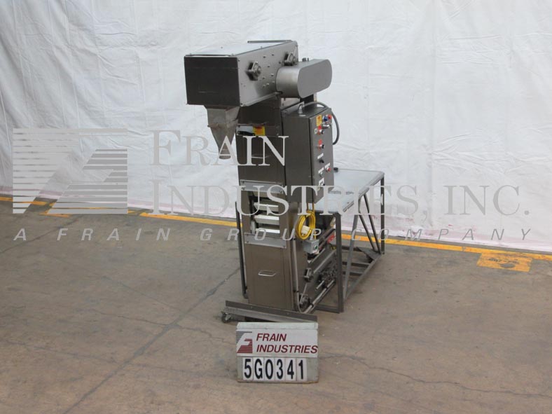 Z型斗式提升机,每小时产品重量数-取决于材料和应用。约(91)白色塑料产品桶,内部维度的15 L x 7 1/2”W x 5”D,水平地面运行145“L与100年“124 L可行的填充区域”垂直电梯,150年的水平上运行,8“L×8“W产品卸料漏斗,104”排放高度,直接逻辑305 CPU。安装在漆粉底座框架上。