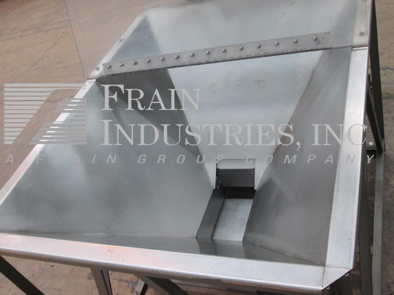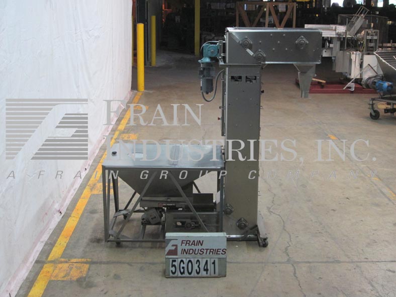 itz提升机,Z型,斗式提升机。每小时产品的磅数-取决于材料和应用。桶尺寸:长度4”;8“宽;2½“高。流量:68“高。配备了一个6立方英尺的产品料斗与翻转顶盖和7“直径入口,20“宽× 7”长的振动给料机,36“长的地板运行,80“垂直提升,36”水平运行,不锈钢盖,变速控制,和不锈钢出料溜槽。安装在施法者。