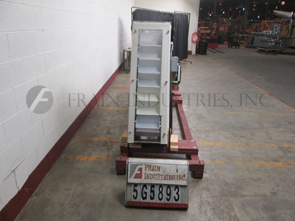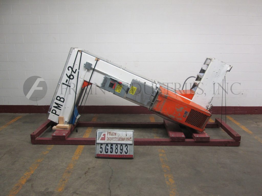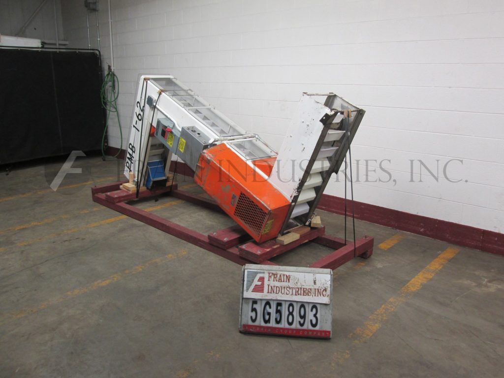 Z型斗式提升机。每小时产品的磅数-取决于材料和应用。配备白色塑料产品桶内尺寸4“长x 8“宽x 2“深度和36“长水平地板上运行一个13“90年饲料高度”垂直起降13“广泛的框架,到96年“开销水平上运行,5 x 5”卸料漏斗95”卸料高度。动力由0.33马力侧安装电机驱动器。安装在重型基础框架。