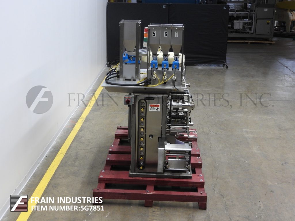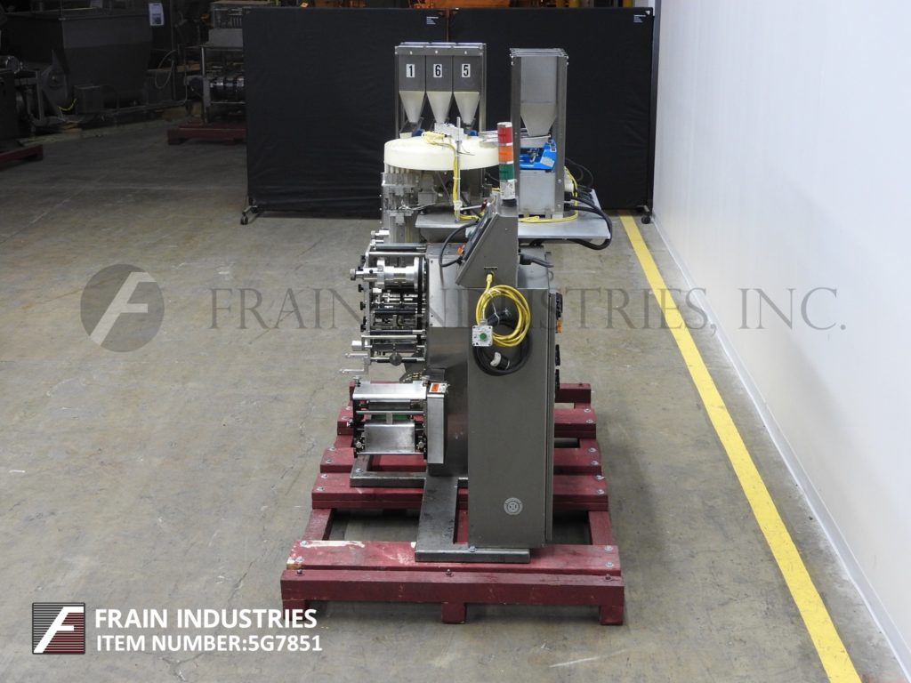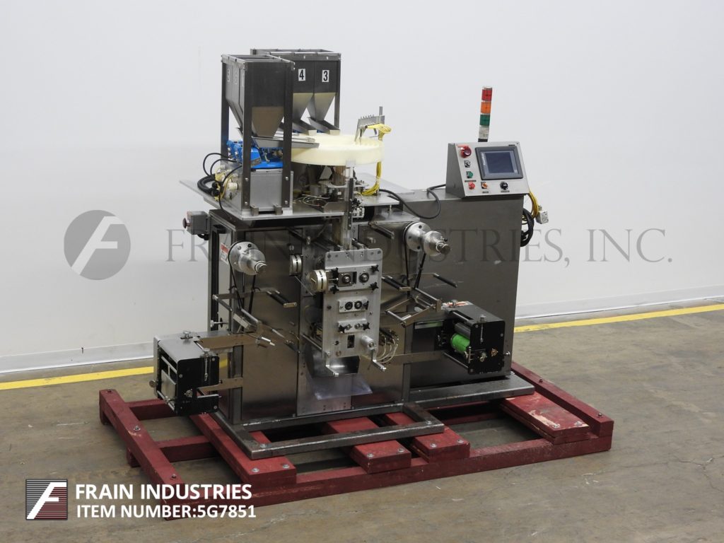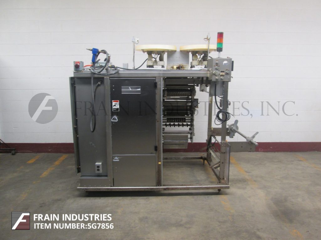 垂直地带封隔器。能够运行12“网的箔或热密封薄膜。配备:两台Syntron振动给料机、缺片检测系统、双照片配准、柔性印刷打印机、Allen Bradley SLC501 (DL30显示)PLC。附加功能包括Wrapade计数,配料和盒灌装系统。最后一次运行2个1/8“x 2”袋,包含两个片剂五横,进入100和125 ct。盒子。速度取决于材料和应用。
