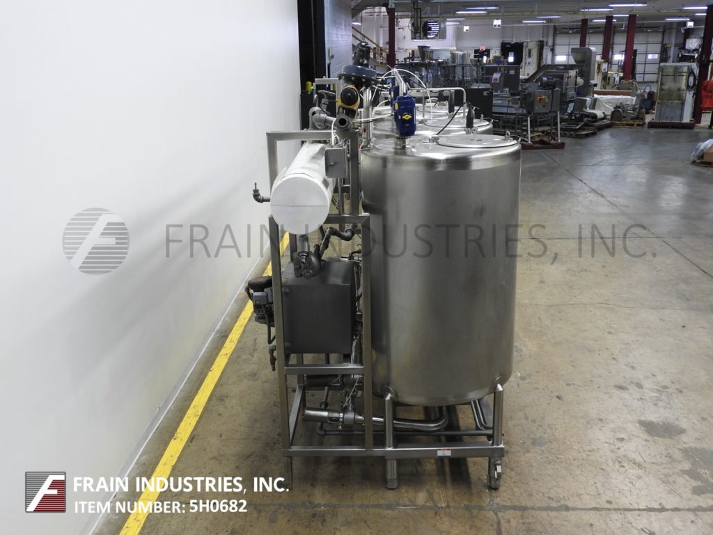 返回所有设备A&B处理系统,不锈钢,CIP系统,每小时的率 - 取决于材料和应用。配备(3)SANI-FAB 32“OD X 56”直墙,200加仑不锈钢单壁罐(1)用于苛性酸,(1)酸和(1)用于冲洗型,所有有扁平的上衣和人的方式和翻转盖板,顶部返回端口和顶级安装的激动。斜面底部底部底部底部放电,9“ID X 60”长单管热交换器。系统具有所有不锈钢管道和卫生联轴器,流量和压力控制阀。带有A / B PLC的控制面板,A / B触摸板控制与面板视图,E-STOP和状态灯。安装在(8)腿不锈钢基架上。