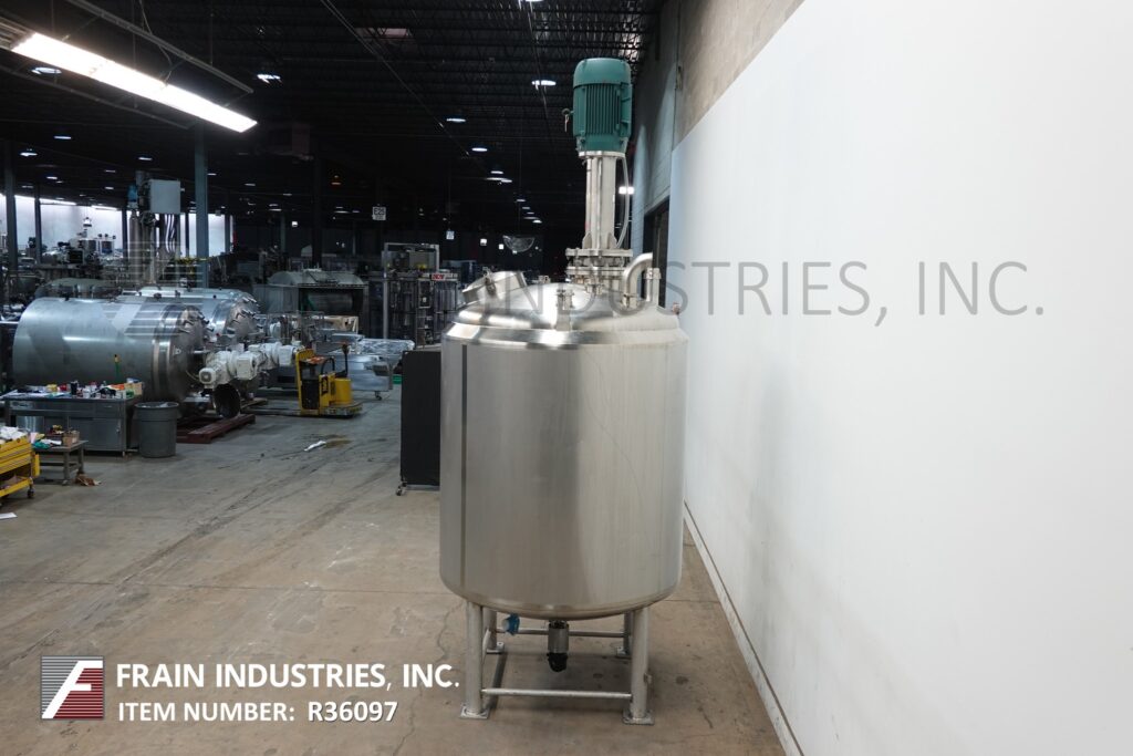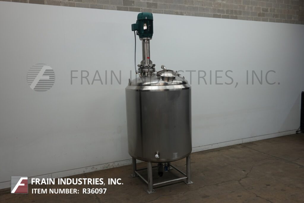 回到所有设备A&B过程系统,1000加仑容量,304不锈钢单壁工艺罐。船舶尺寸:64“直径X 70”直壁。配备18英寸OD顶部铰接式铰接式操作方式,(2)CIP喷射球,由2½“OD / 2”ID Tri-Clamp配件提供,40 HP顶部安装的高剪切搅拌器,(1)热电偶,(1)冲洗安装传感器冲洗阀4½“OD / 4”ID Tri-Clamp放电,具有19“接地间隙。