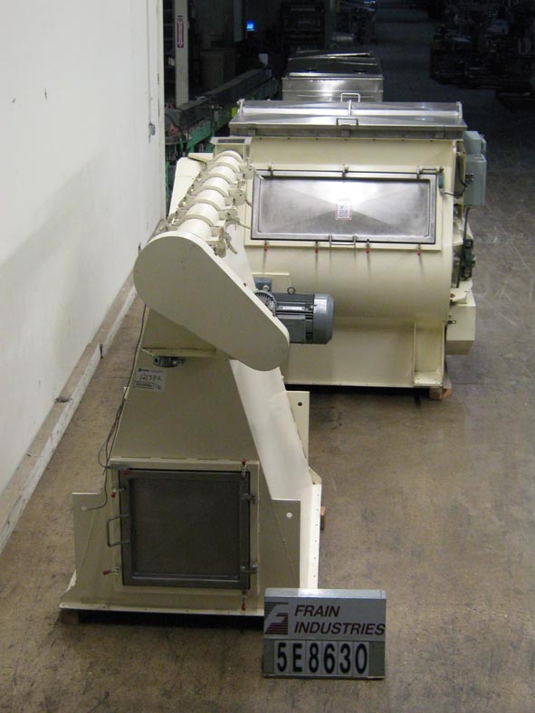返回所有设备1000升(35铜英尺,),不锈钢,双轴,带散装料斗和螺旋钻系统的桨式搅拌机。室内尺寸:54“长度; 45”宽;54“深度。配备双铰链翻转/螺栓向下顶盖,通过研磨双轴桨,空气吹扫密封件,54”x 10“孟白放电和20个HP驱动器。排放到61”L x 48“中排出。W x 63“D散装产品料斗,带120”L X 6“OD,S / S螺旋输送机,1个HP电机驱动,24”X 24“端散热器翻转开口螺栓拆开门禁门,一侧1 3 /4“ID螺纹接入端口。不锈钢接触部件。