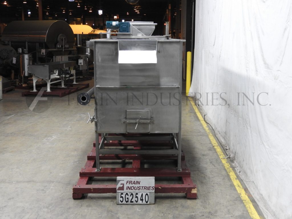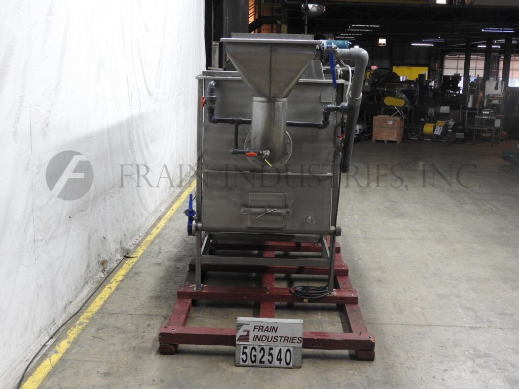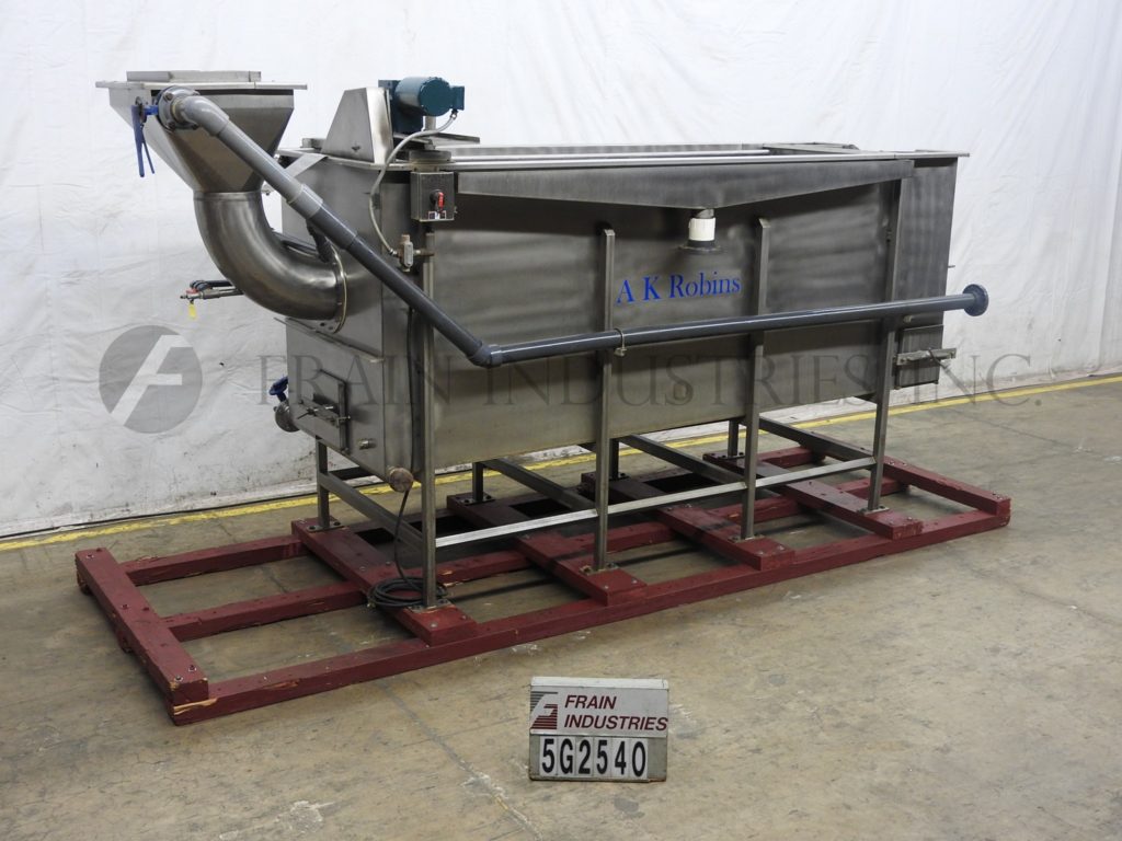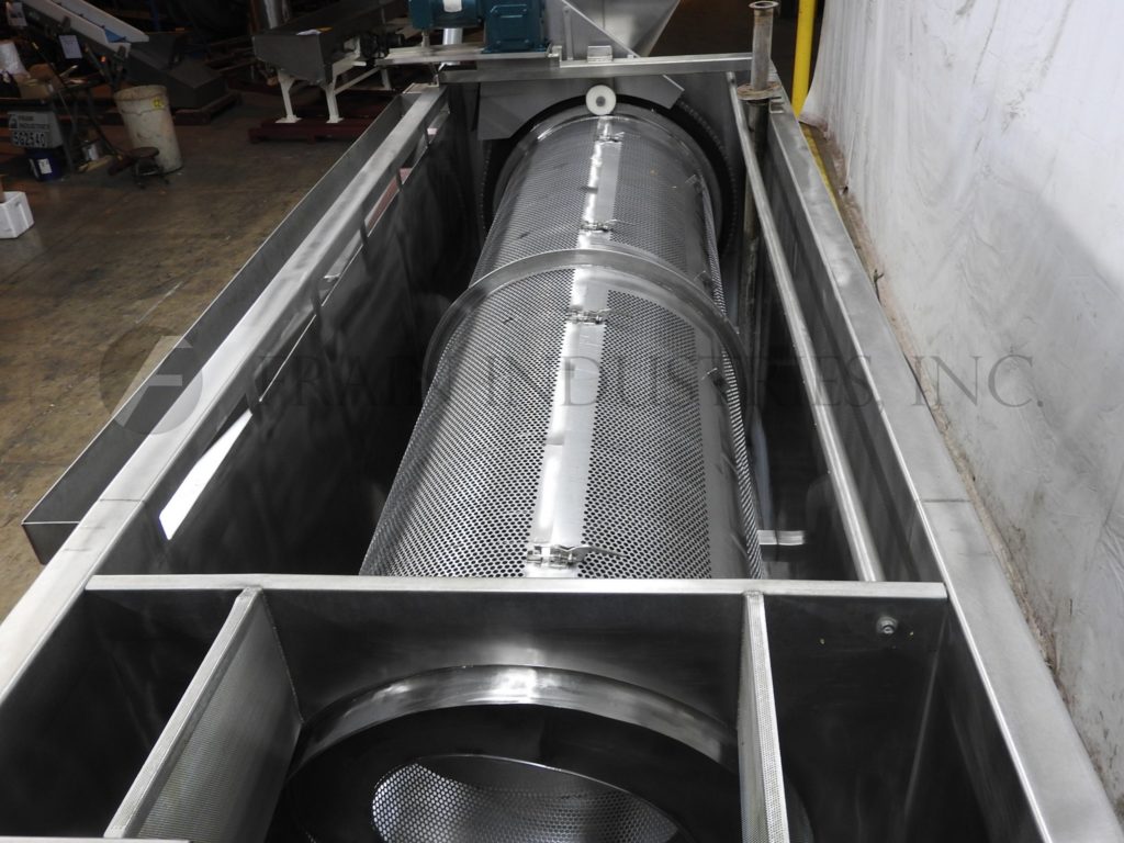 返回所有设备A.K. Robins, HYD型,产品水合器和洗衣机。可用于水合物产品或分离粒径较小的浮力颗粒。144”长x 48“宽x 51“深度保湿液舱配备了36”直径x 125“长穿孔卷3/8“孔和由1惠普开车,26“x 16”的产品,表面喷杆移动向溢出污染,9“OD / 4”ID 8-bolt法兰溢出放电,21“宽x 14”长产品出料槽与70年“地面间隙,(1) 7½"OD/3"ID 4-螺栓供水,(1)6"OD/2"ID 4-螺栓法兰供水,(2)3½"直径底部侧排水和(4)12" x 12"人孔检修面板。