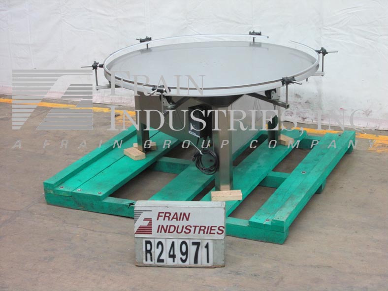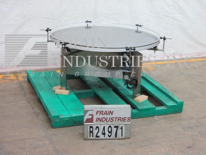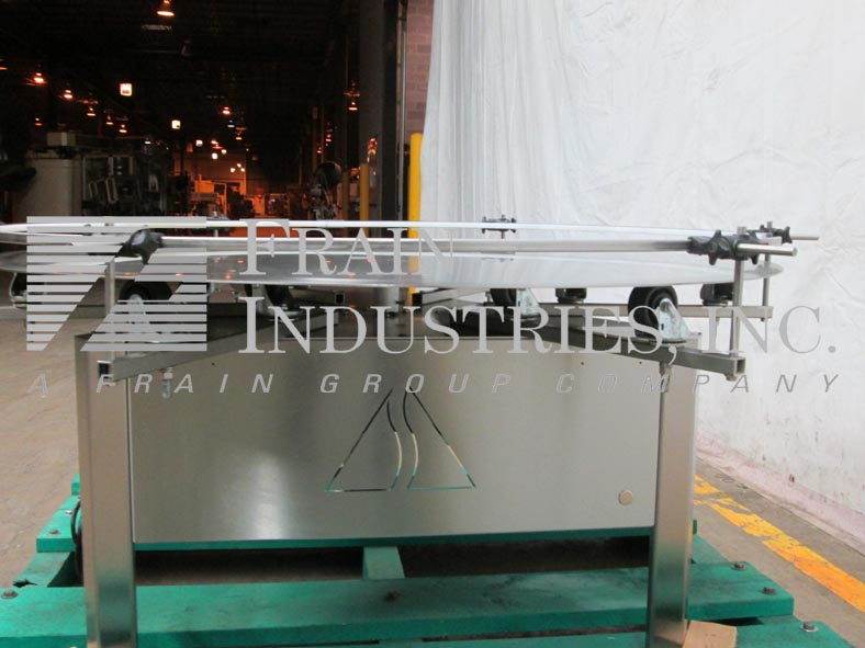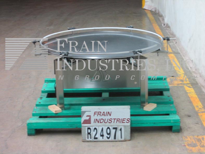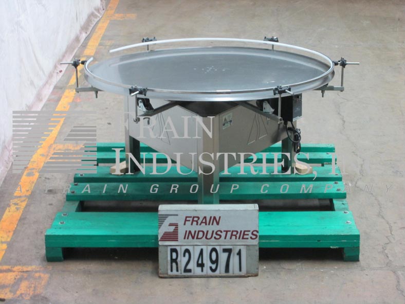 包装系统60"直径,不锈钢变速光盘整理器,能够处理50至150个集装箱每分钟-取决于材料和应用。配备60" x 1/8"厚304不锈钢整理盘高度可调导轨,变速控制器和安装在不锈钢底座高度可调腿。
