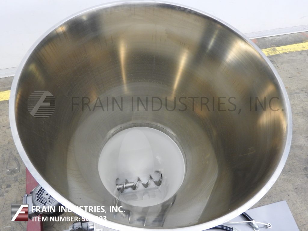 返回所有设备精密,Mechatron,不锈钢8.7英尺³料斗和螺旋重力给料系统。根据材料,应用,环境和机器配置的不同,能够分配330立方英尺/小时。配备32"直径x 25"深锥形产品料斗1.2立方英寸乙烯基底部(2)外部搅拌桨。3“直径x 30”长螺杆动力由1马力驱动器。包括触摸屏控制器与数字显示屏幕,按钮启动,手动/关闭/自动开关和可变速度拨号给进料速度和搅拌。安装在661磅。(300公斤)测压元件。