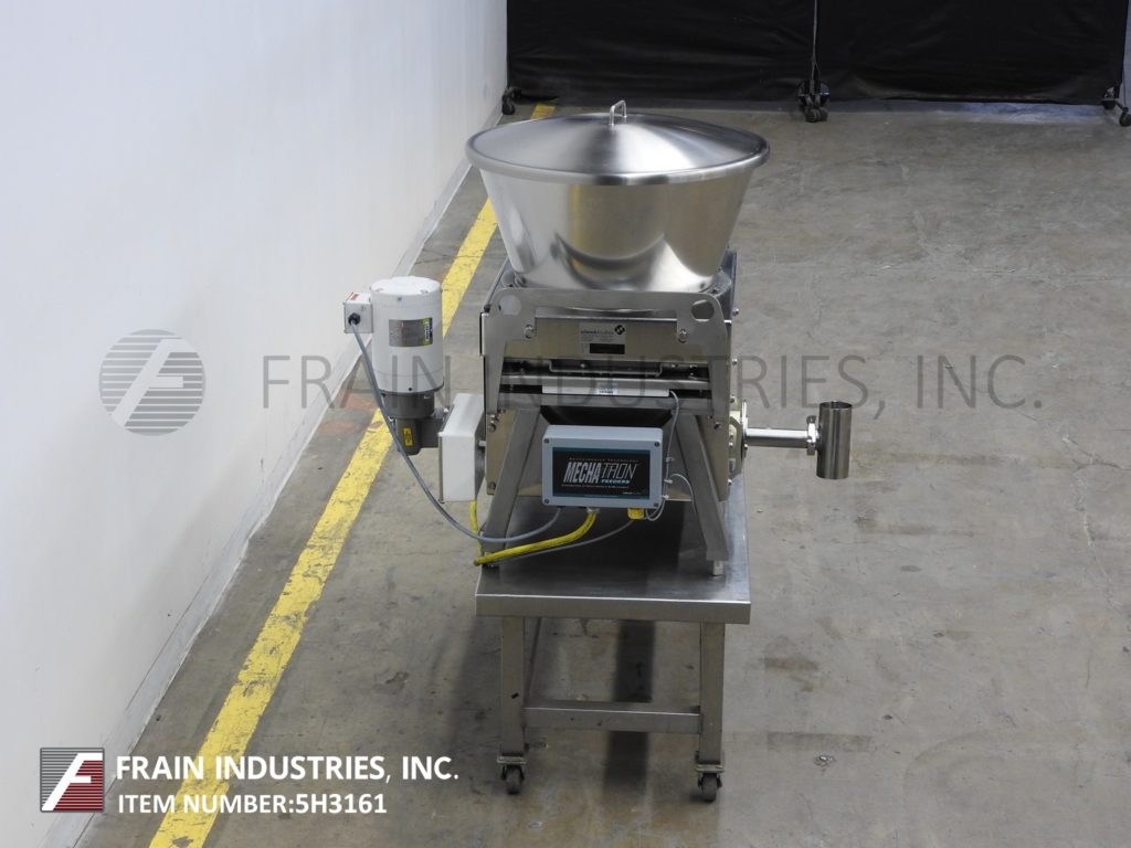 返回所有设备准确,型号Mechatron MODMCDG1A,不锈钢,螺旋推运器,重力进料系统。能够分配产品的330立方英尺每小时的 - 这取决于材料,应用,环境和机器的配置。配备有28" OD×12" 深不锈钢3.7立方英尺圆锥形产品料斗和螺旋推运器重力进料系统。1.2立方英尺vinyle底部与(2)外部的搅拌桨。直径为3" ×30" 长螺钉由1个HP驱动供电。控制面板具有用数字显示屏幕,按钮启动,maunual /关/自动开关和用于进料速率和搅拌可变的快速拨号触摸板控制器。装在330磅。(150千克)的负载单元。