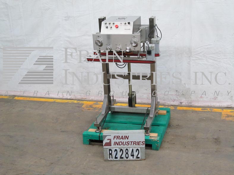 返回所有设备半自动,不锈钢,6轴,夹具,螺钉和螺旋型每分钟5至100粒。帽子:(10mm - 150mm)直径。瓶子:最多10“w。有5至65磅的最大扭矩,具体取决于材料和应用。36”L X 1“H侧瓶握住皮带最大为9英寸宽度调节,控制各个主轴的控制,高度可调C型框架,e-stop。设计安装在输送机上方。安装在不锈钢框架上,带上脚和脚轮。