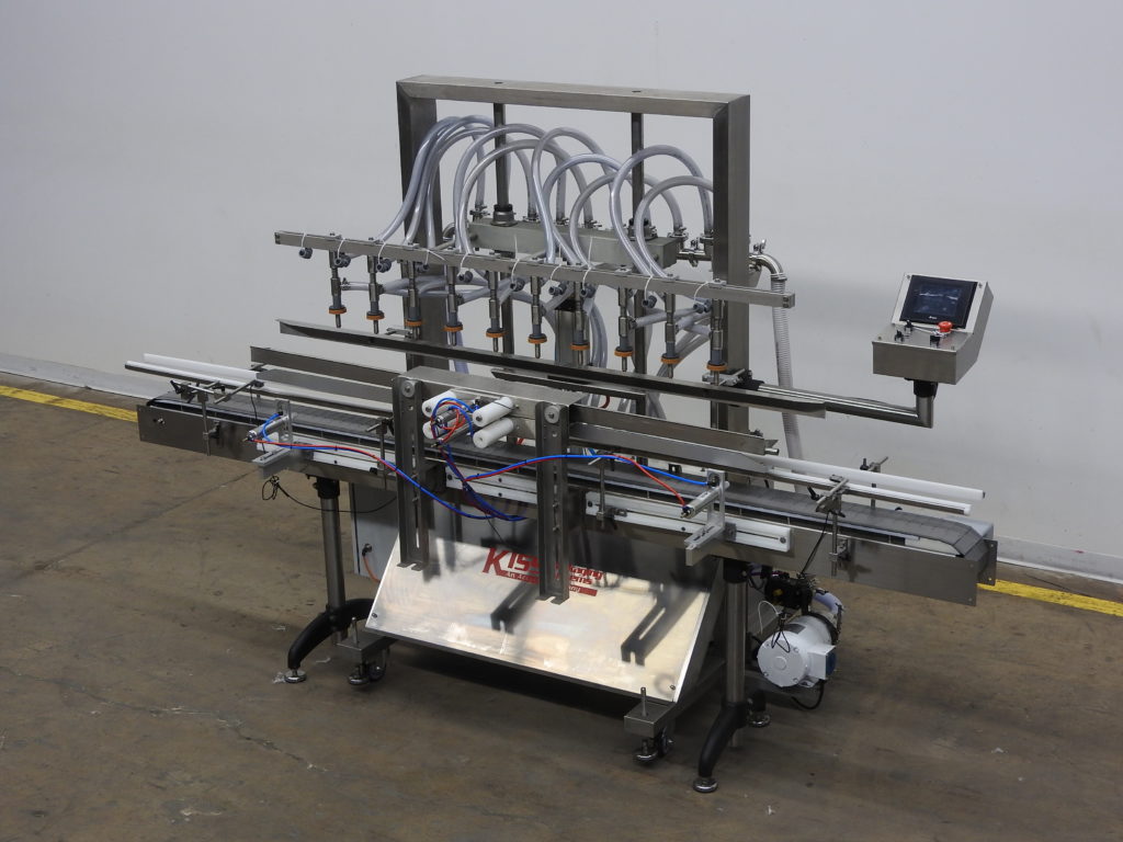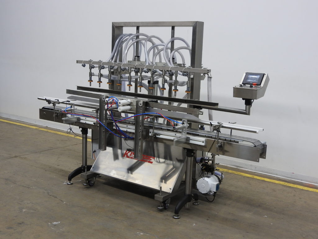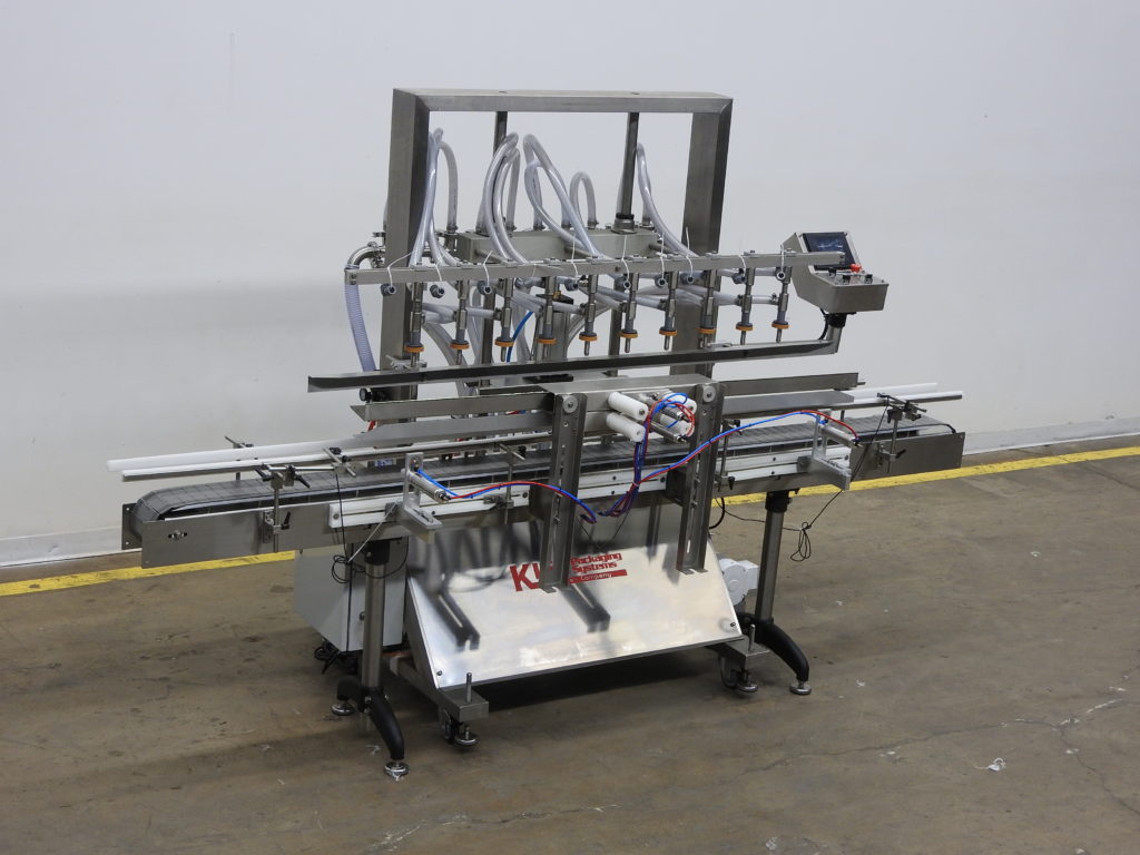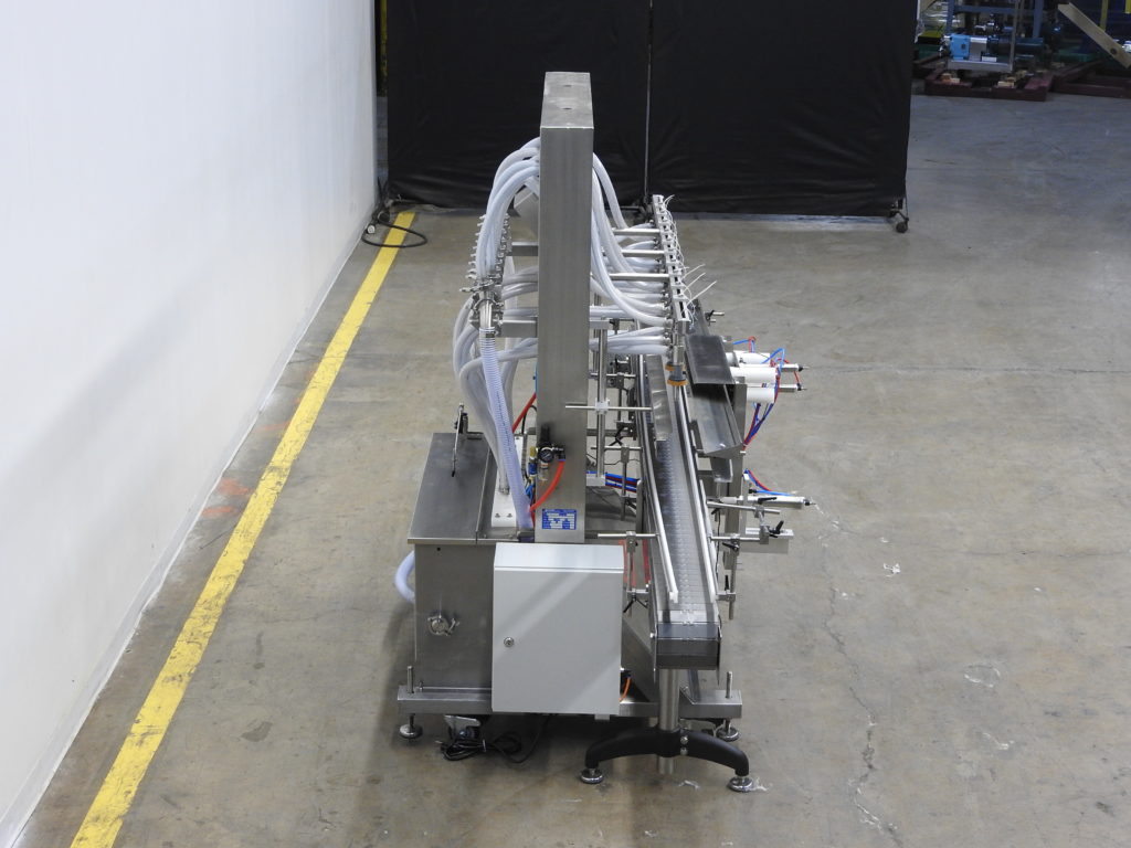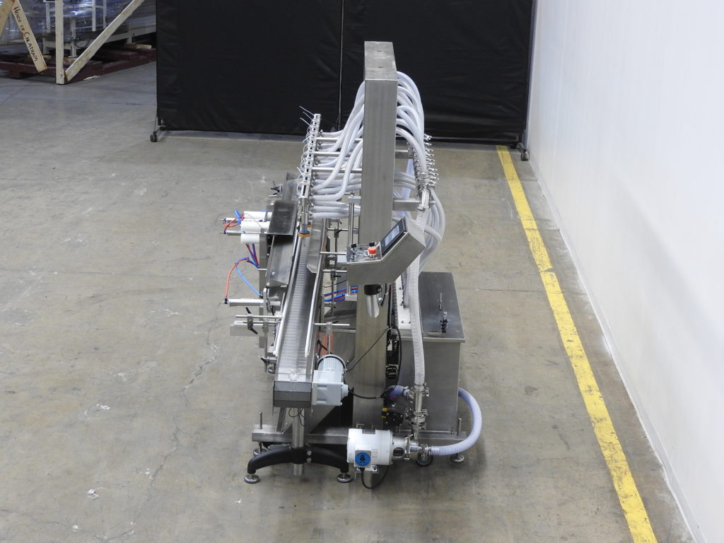 返回所有设备Accutek,Model APOF10,自动,内联,10头,不锈钢,压力重力,溢流填料。每分钟容器数量 - 取决于材料和应用。配备(1)10'长塑料Delron X 4-1 / 2“宽容集装箱输送机,带气动分度和可调节导轨。72”长填充滑动杆与(10)3/4“OD不锈钢潜水喷嘴可调中心,72英寸“长滴漏托盘,41”长x 14“宽产品溢流罐和1/2 HP卫生离心泵。控制面板具有触摸屏操作员界面,带电源和泵开启/关闭,机器上/向下开关。安装在不锈钢框架上,带脚轮和高度可调锁腿。
