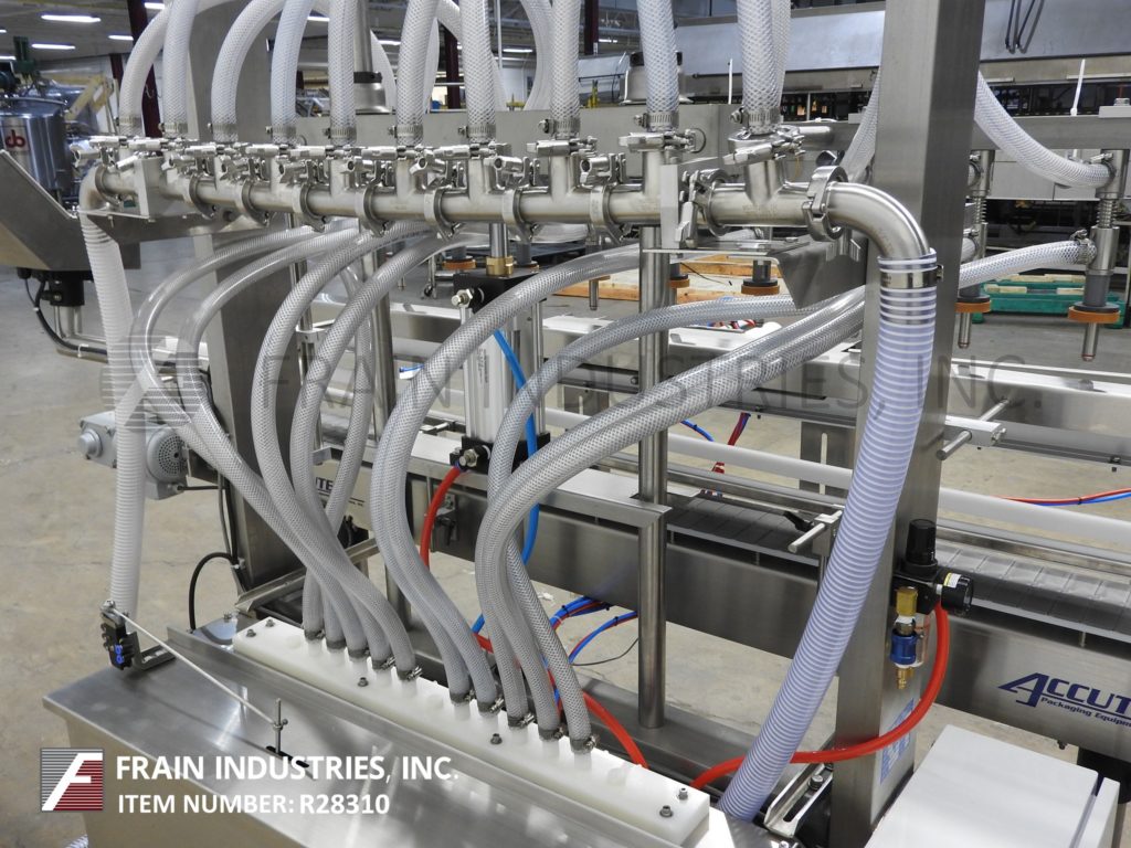 返回所有设备Accutek,Model APOF10,自动,内联,10头,不锈钢,压力重力,溢流填料。每分钟容器数量 - 取决于材料和应用。配备120“长X 6”宽德尔德鲁集装箱输送机,气动容器分度,(10)5/8“OD不锈钢潜水喷嘴,72”长滴水托盘,产品溢流罐和1½HP离心泵。触摸屏操作员界面控制器。安装在不锈钢框架上,带脚轮和高度可调锁腿。额定/速度取决于材料,应用和机器配置。