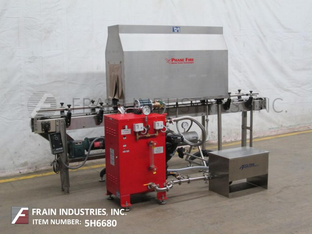 返回所有设备Accutek Phase Fire 32STMSA1AFC,不锈钢蒸汽收缩隧道和发电机,额定从10到200瓶每分钟-取决于材料,应用和机器配置。可处理PVC、PET、OPS等收缩材料及各种圆形、方形、椭圆形、弧形容器。配备侧门进入喷嘴的银行分为(2)部分,与(3)套4喷嘴每一方可以关掉一半如果不需要,可以独立控制每个喷嘴的银行,这样你就可以应用冷却空气的12个喷嘴,冷却容器足以安全地进行处理,很容易提高和降低,配有36千瓦的蒸汽发生器和补充给水泵。