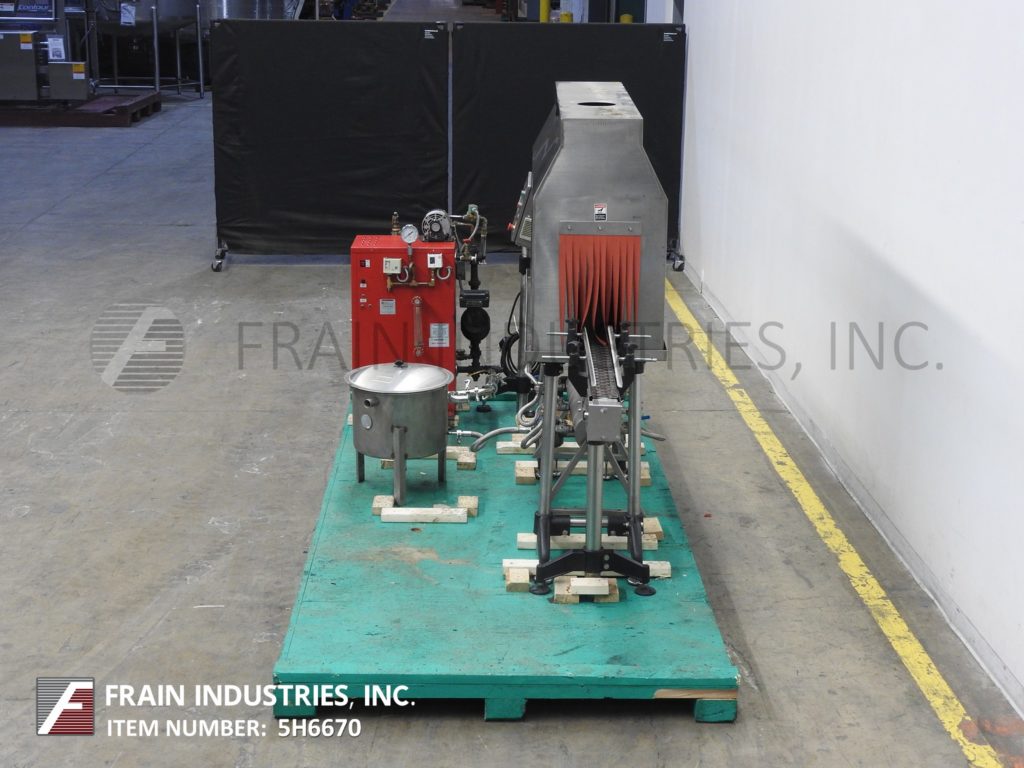 返回所有设备Quadtutek相火32stmsa1afc,不锈钢蒸汽收缩隧道和发电机,每分钟10到200瓶 - 取决于材料,应用和机器配置。可以处理PVC,PET,OPS收缩材料和各种圆形,方形,椭圆形,曲线形容器。配备120英寸长x 4.5英寸宽,德雷丁腰带,带有2“高导轨的不锈钢输送机,变速控制1/2 HP电机驱动。开始,停止,e-stop按钮。隧道有侧门接入喷嘴的堤岸分为(2)一半,用(3)套4个喷嘴每侧,如果不需要,您可以关闭一半,每个喷嘴库都可以独立控制,以便将冷却空气施加到12个喷嘴中的一些那to cool your containers enough to be handled safely and are easy to raise and lower, twist, adjust, or replace.ide door access to the banks of nozzles divided into (2) halves and has 36 Kw steam generator with all safties and make-up feed water pump. Mounted on stainless steel frames with leveling legs.