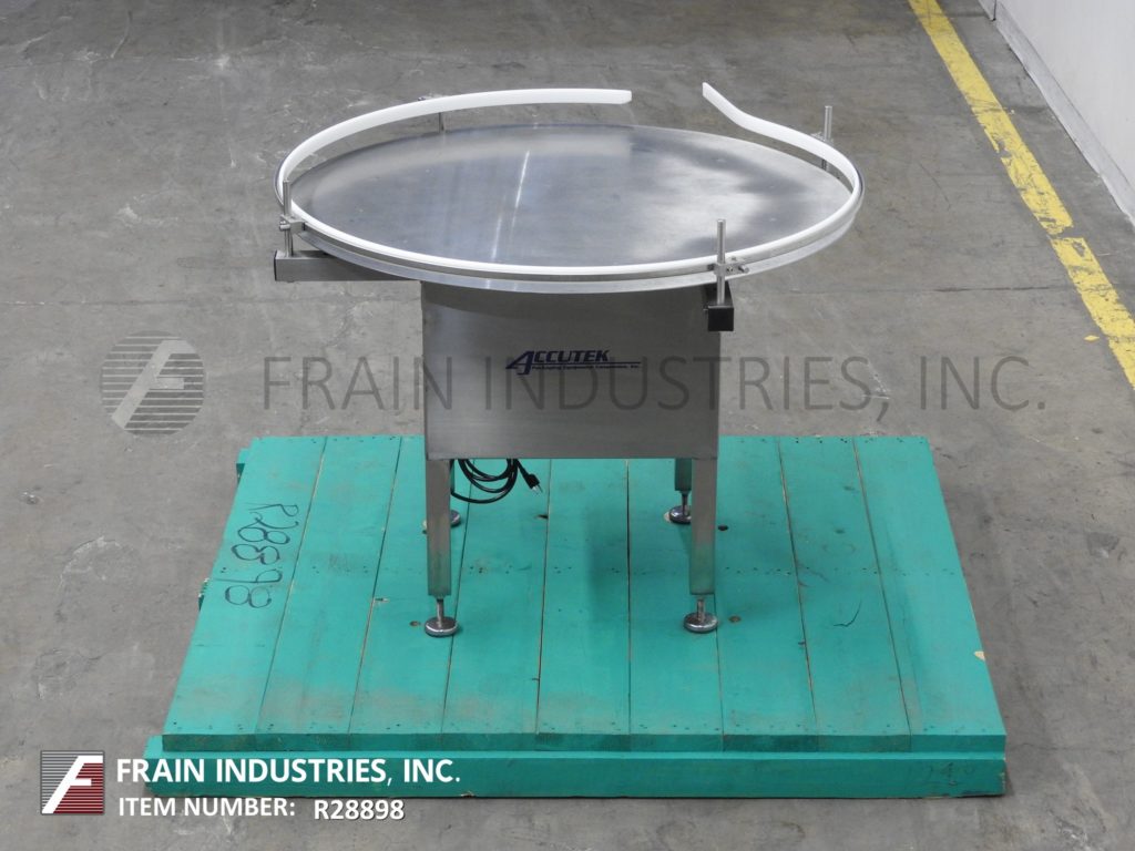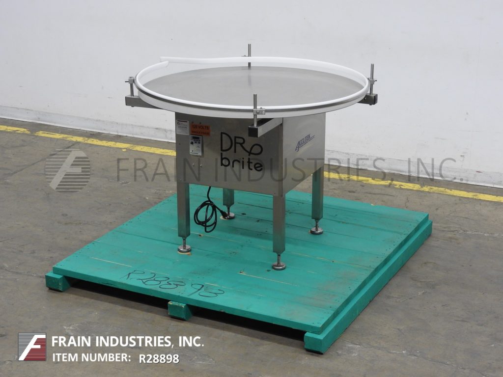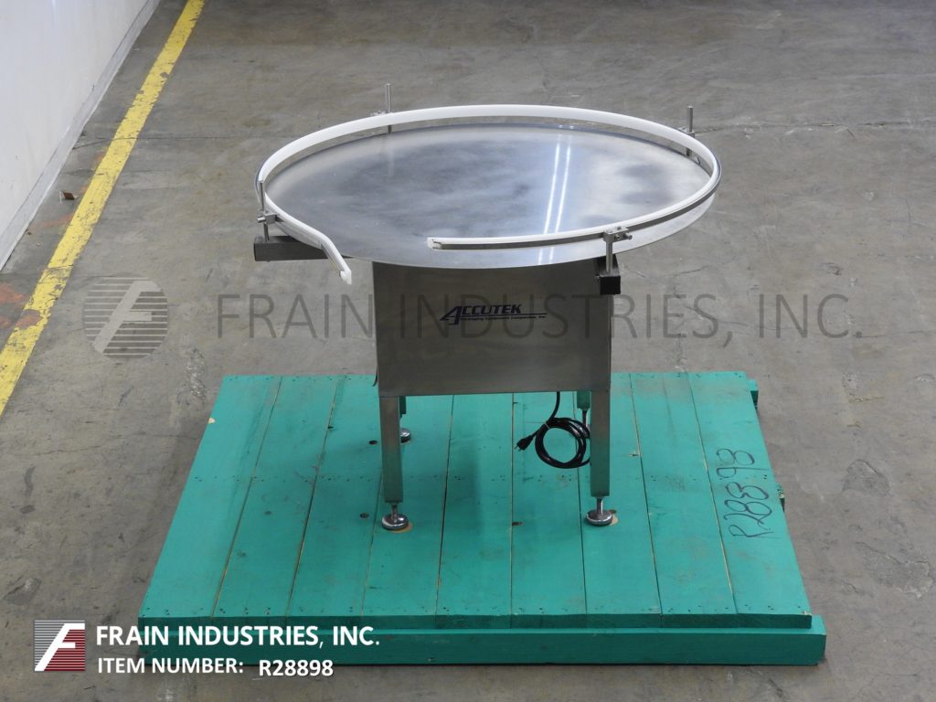 Accutek,直径48",不锈钢,旋转圆盘整理器,每分钟容器数量-取决于材料,应用和机器配置。配备不锈钢48"盘变速拨号,可调的侧轨和工作台高度32"至35"。
