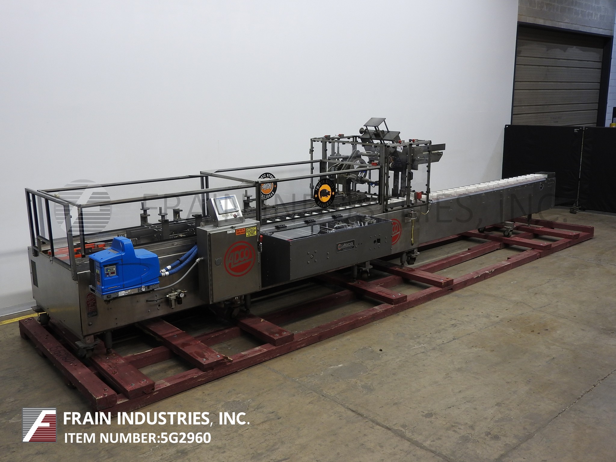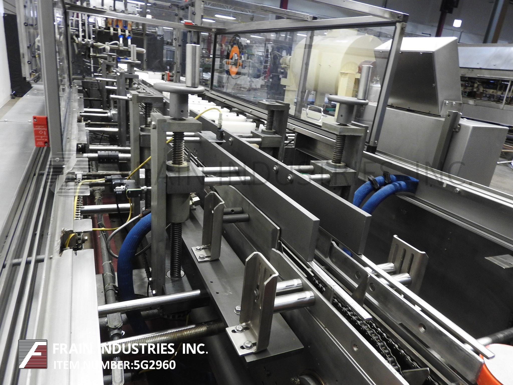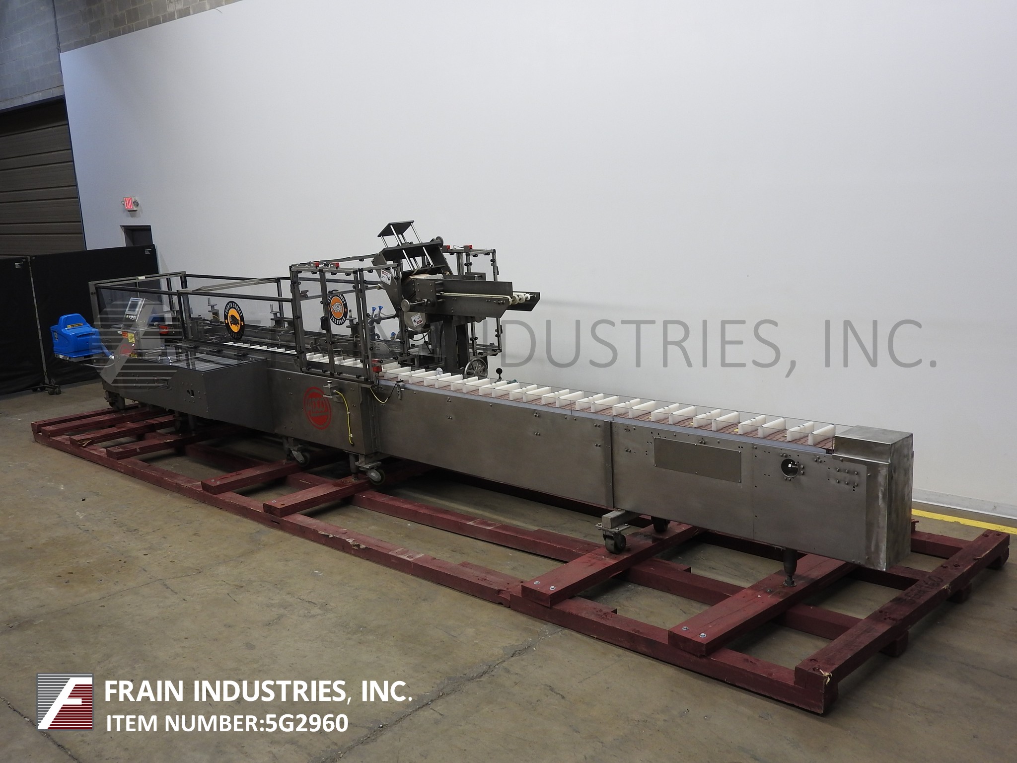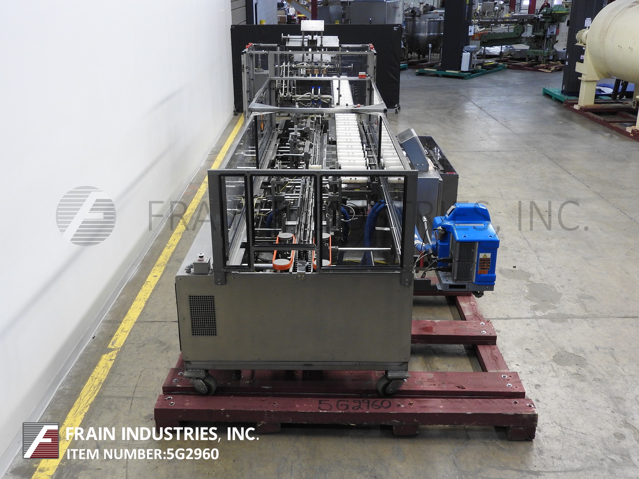 返回所有设备Adco 12BC150-SS型,自动,连续运动,水平,不锈钢,热熔胶纸箱每分钟20至120箱-取决于材料和应用。4链可调单元设置在12"中心,2-1/2"宽x 3"高耳。纸箱尺寸范围:1"至9-1/2"长度;3/4"到3"宽度5"到10"深度。配备40“长动力空白纸箱杂志,(3)头部旋转pic-n-place 168”长x 10“宽固定的产品在进料输送机,6”长x 2产品“高x 10“深口袋,产品/不管是不是纸箱,纸箱压低,桶凸轮装载机,诺信热熔胶系统和21“长双皮带压缩部分。控制面板上有机器、真空、jog / run开/关开关、启动、停止、e-stop按钮。安装在高度可调的不锈钢底座上,并配有安全防护装置。