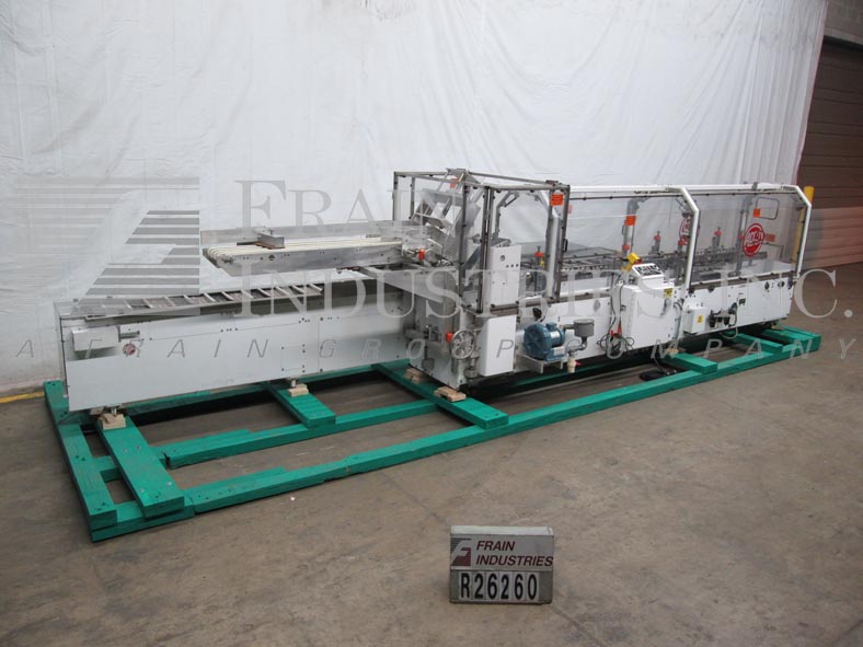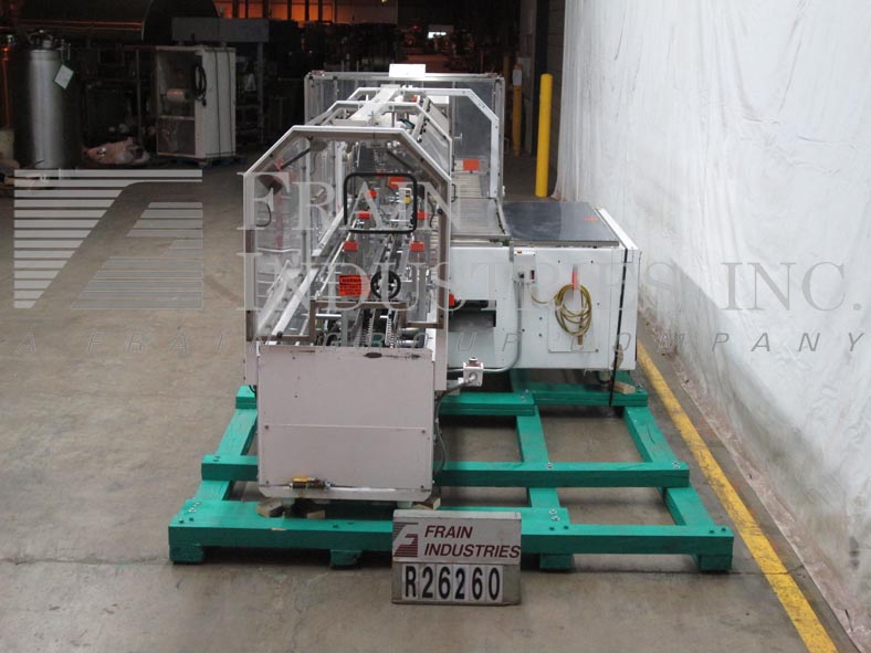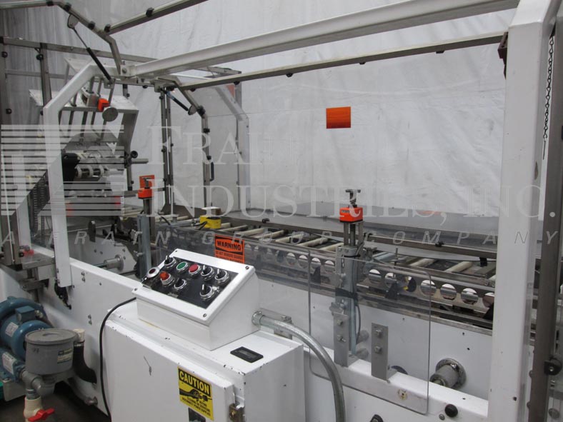 返回所有设备Adco型号15DBC105EC,自动,连续运动,水平,热熔胶纸箱从25至125箱每分钟-取决于材料和应用。4链可调单元设置在12"中心,2-1/2"宽x 4"高耳。纸箱尺寸范围:1"至9-1/2"长度;宽度为3/4“至3”,深度为6“至12”。配备144“长x 12”宽在进料输送机6-3/4”长x 1“高x 12“深口袋固定产品,70”长4带空白纸箱杂志供电,2头pic-n-place扶轮社、产品/不管是不是纸箱,纸箱压低,桶凸轮装载机,诺信热熔胶系统,仪表产品的快速转换,入股事宜真空泵系统及联锁安全保护。控制面板有机器、真空、jog / run开/关开关、启动、停止、e-stop等变速控制拨盘。安装在可调节高度的框架上,并配有安全防护装置。