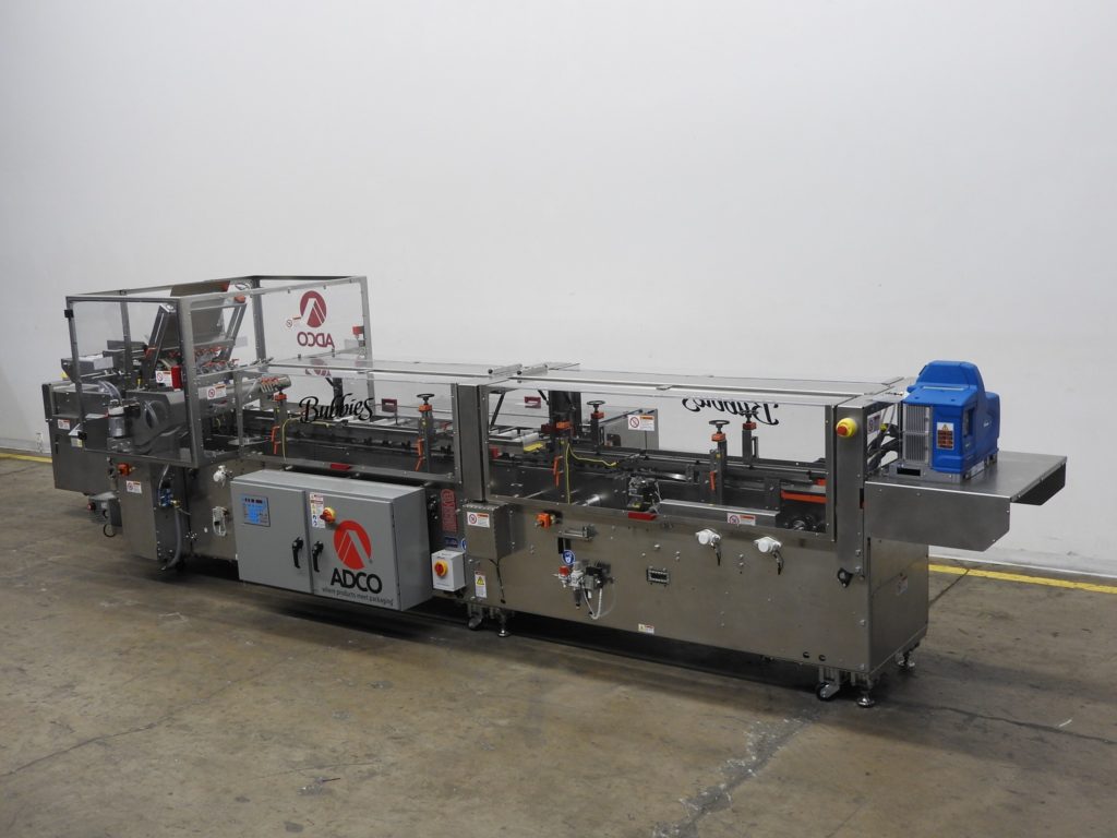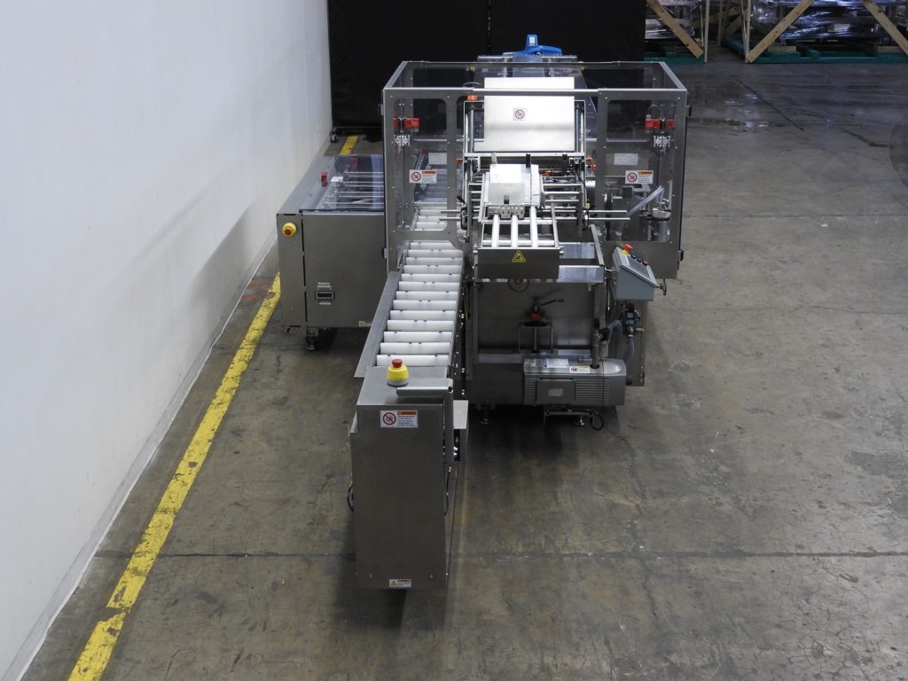 返回所有设备ADCO,型号15ddBC105-SS,自动,水平,连续运动,热熔胶胶凝机,每分钟25到120箱纸盒 - 取决于材料和应用。非冲洗不锈钢结构。纸箱尺寸范围:1“至9½”的长度;3英寸宽度为4.5“至12”深度。配备(4)耐腐蚀涂层可调节链,设置在12英寸中心,3½“高凸耳。140英寸的饲料输送机长销售,48英寸长(3)带自动空白纸盒盒,(2)头旋转PIC n将纸箱送纸器与前歇和顶部平方设备放置,没有产品/没有纸箱,没有纸箱/没有负载传感器,桶形凸轮产品装载机,Nordson Problue(2)枪热熔胶系统,主要和次瓣闭合,真空泵,SEKO调节仪和32“长双侧侧排放输送机。控制面板具有A / B PLC控制器和A/ b面板视图触摸屏HMI控制使用启动,停止,电子停车按钮和4色堆叠灯。安装在不锈钢框架上,带有互锁安全保护,脚轮和平整腿。