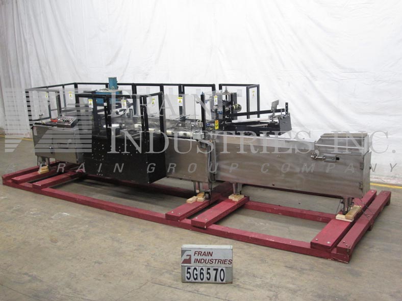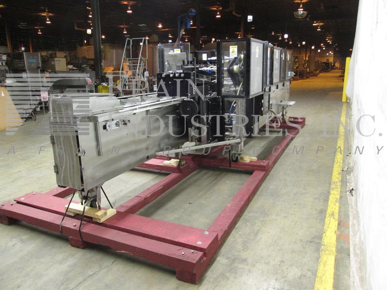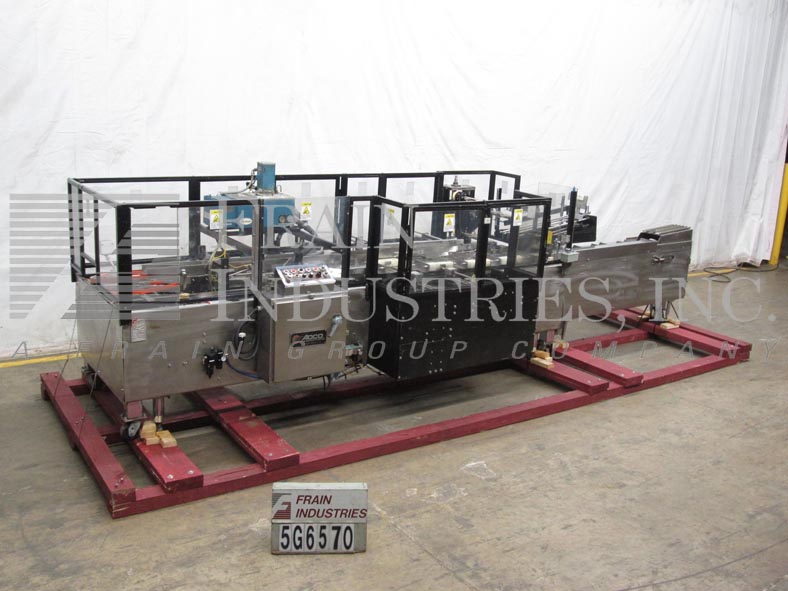 返回所有设备ADCO型号15MBCLSS,自动,卧式,不锈钢,连续运动,热熔胶胶卷,每分钟20到120纸盒 - 取决于材料和应用。纸箱尺寸范围:1至14“长度; 3/4”到宽度为2“,深度为4至12”。配有4个链条可调节的可调节,在15“中心,宽1/1英寸,高凸耳,144英寸”在饲料输送机上,具有10“长x 2”宽x 6“深固定产品桶和48”长产品手装配区域。36“长自动空白纸箱杂志,带3头旋转式PIC-NAPLY和桶式凸轮装载机,Nordson Hot Melt胶水系统,带有主要和矿工翻盖的近距离和21”长压缩部分。控制面板具有运行,慢跑,速度和胶水开关的控制器,启动,停止,电子停止按钮控制和Lexxan安全保护。安装在不锈钢基架上,带锁定脚轮和平整腿。